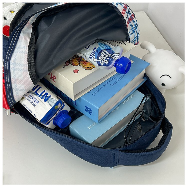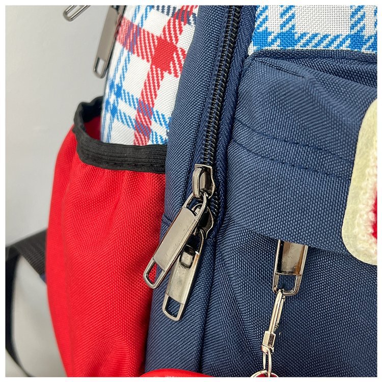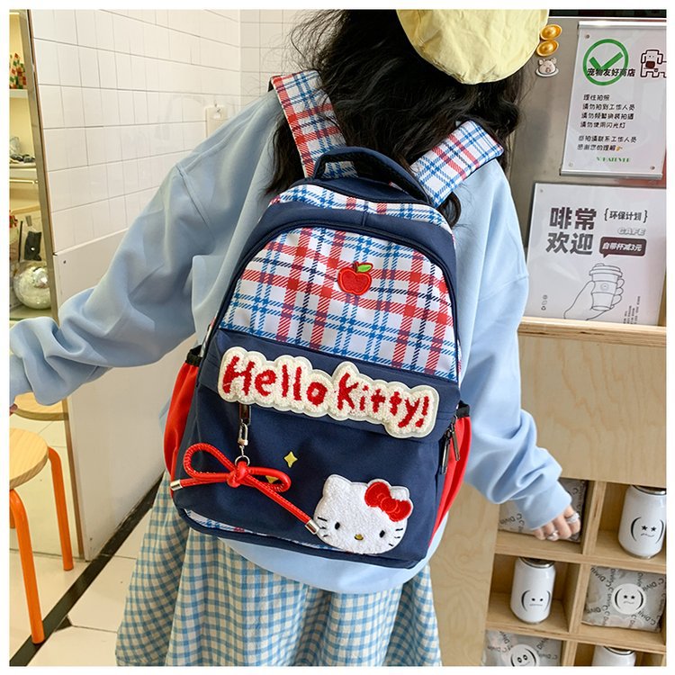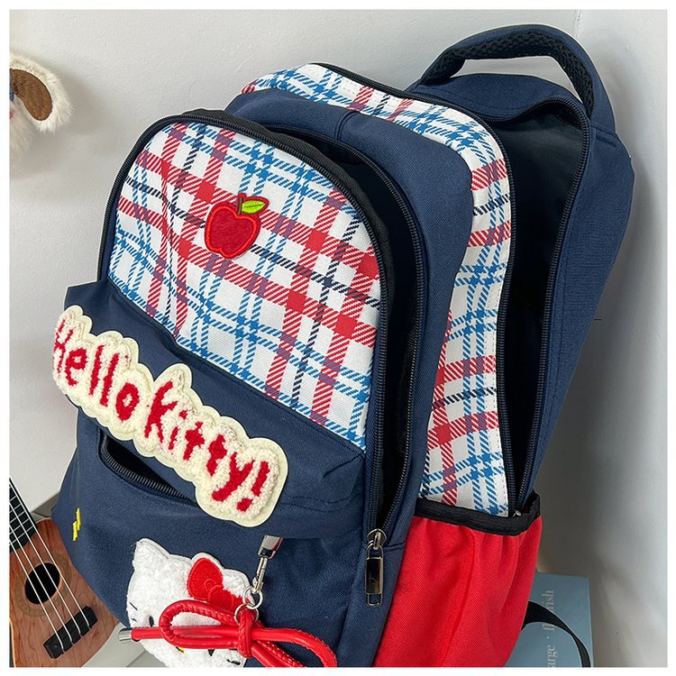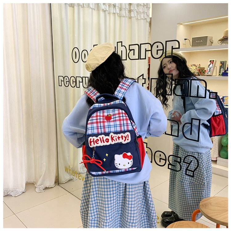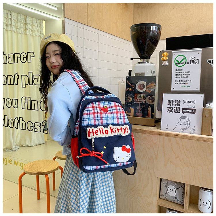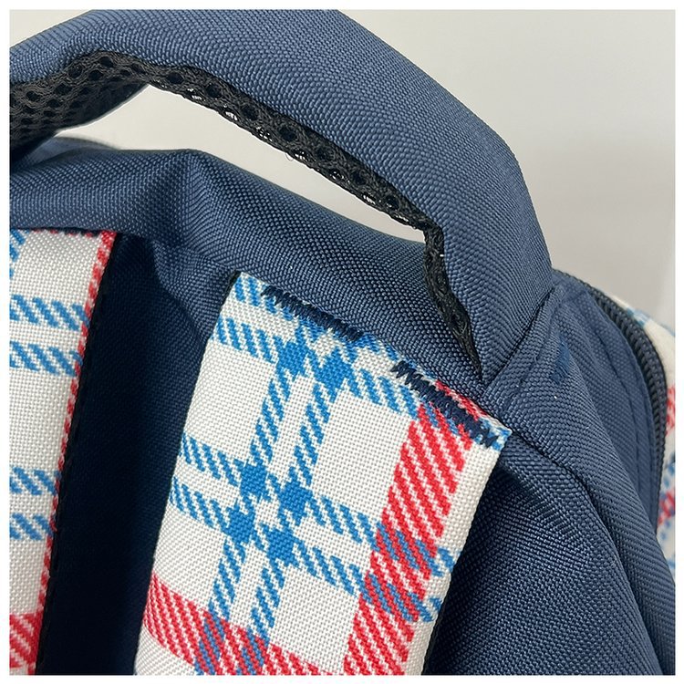 美式复古格子双肩包女大学生小众可爱卡通猫猫背包大容量轻便书包