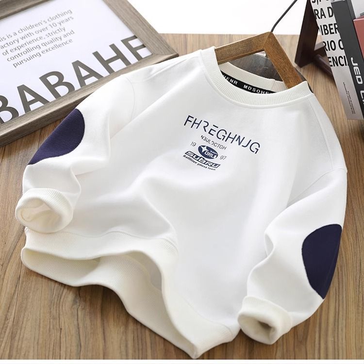 소년의 둥근 목 스웨터 봄 2025 새로운 어린이 둥근 목 셔츠 긴 소매 중대 어린이 잘 생긴 봄과 가을 탑스토어 가기
