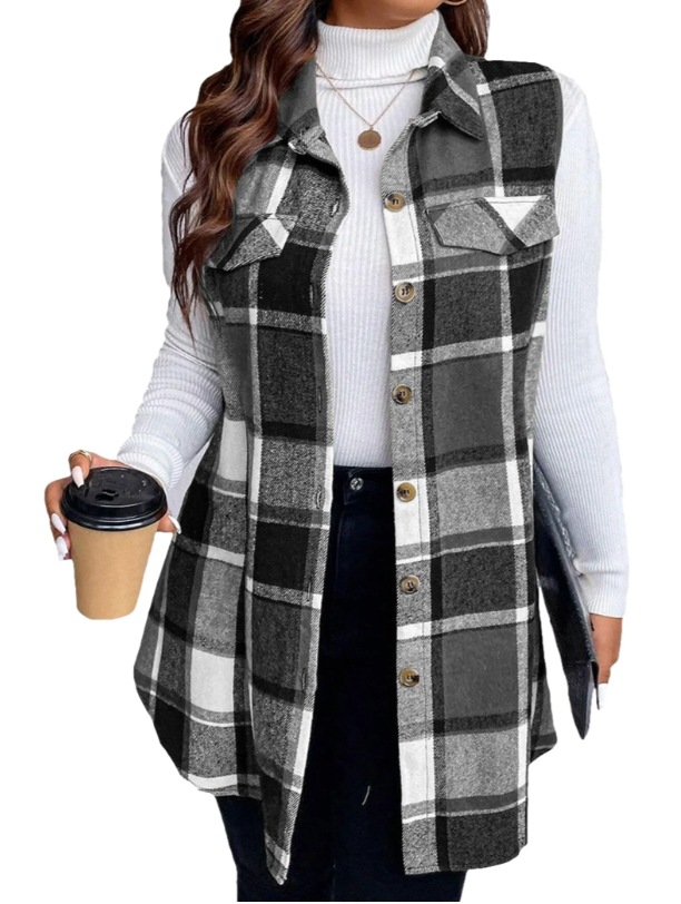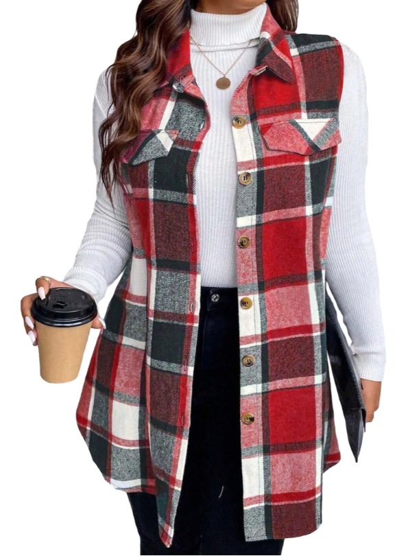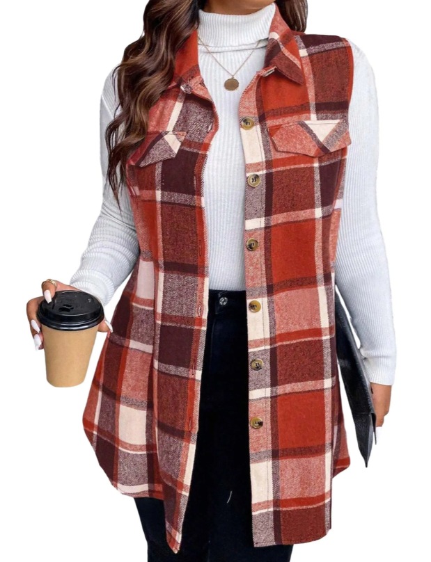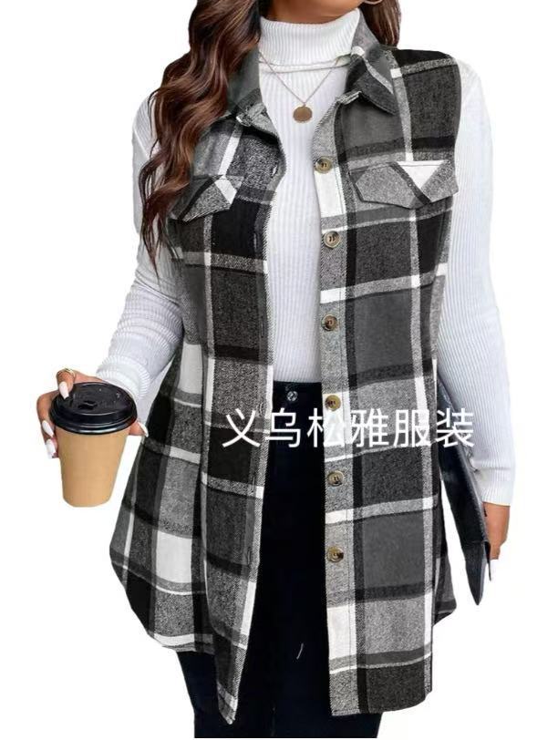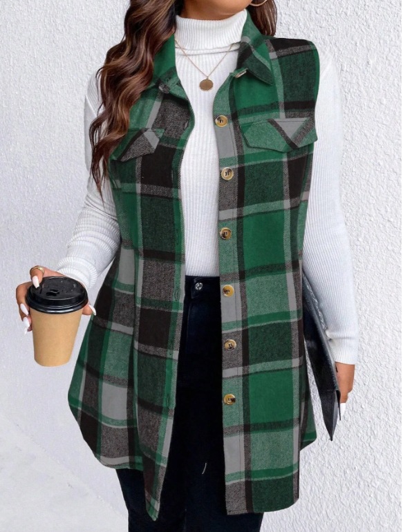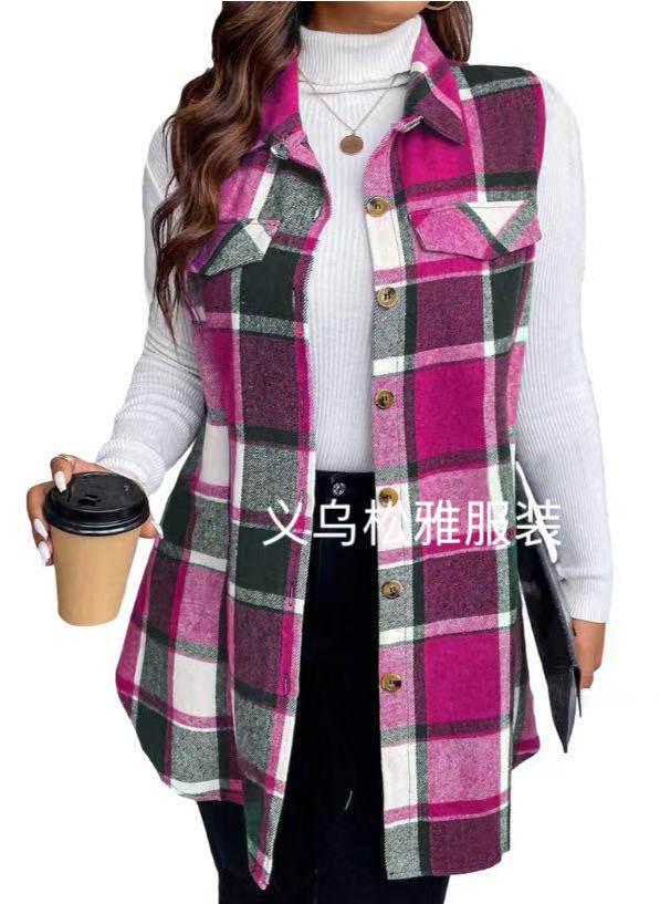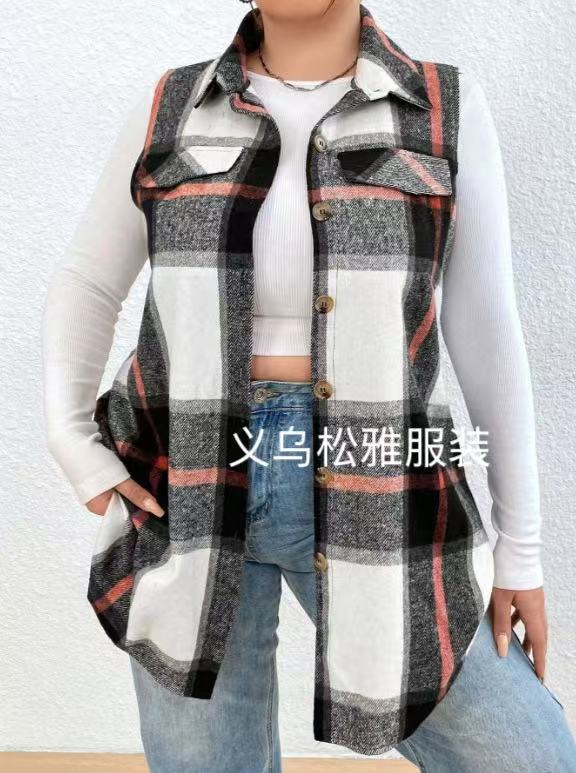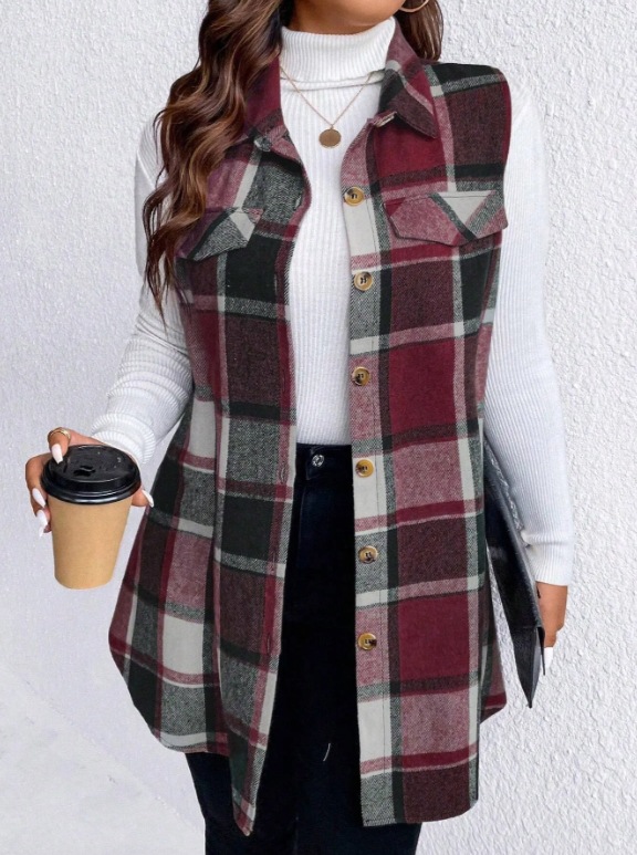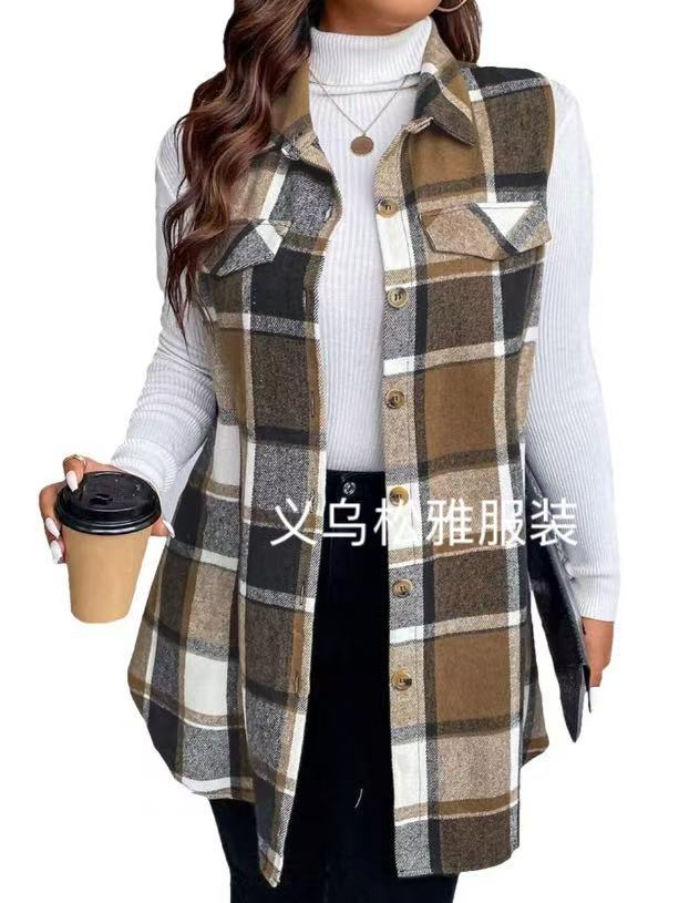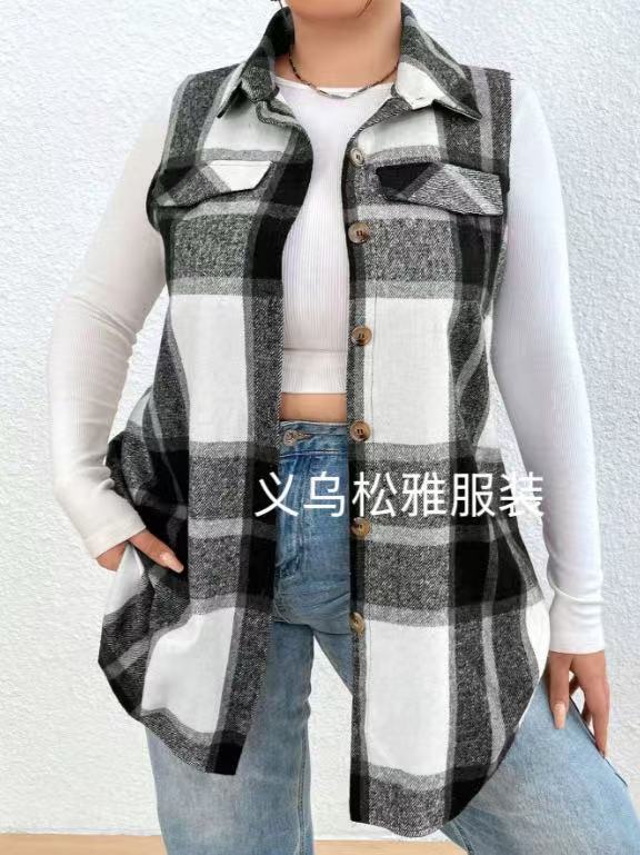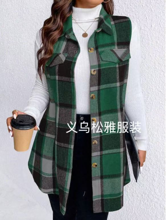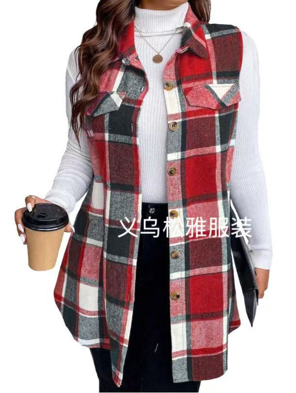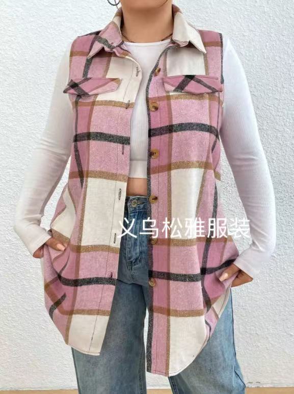 아마존 유럽과 미국 국경 2025 봄과 여름 새로운 캐주얼 올 매치 체크 조끼 셔츠 여성용 민소매 느슨한 조끼