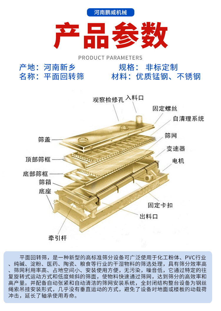 맞춤형 평면 회전 스크린, 곡물 불순물 제거, 왕복 스크린, 분말 입자 등급 스크린, 석재 사료 스크리닝 기계