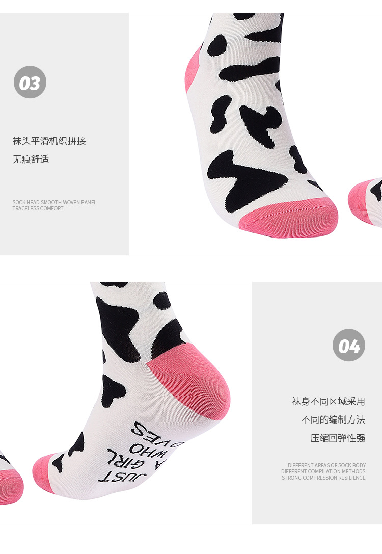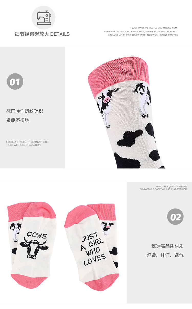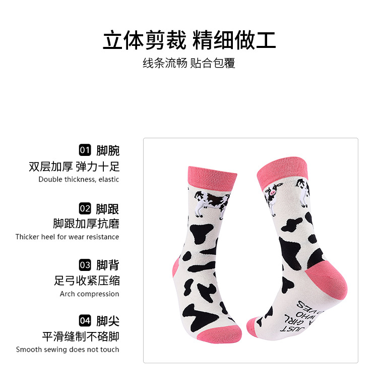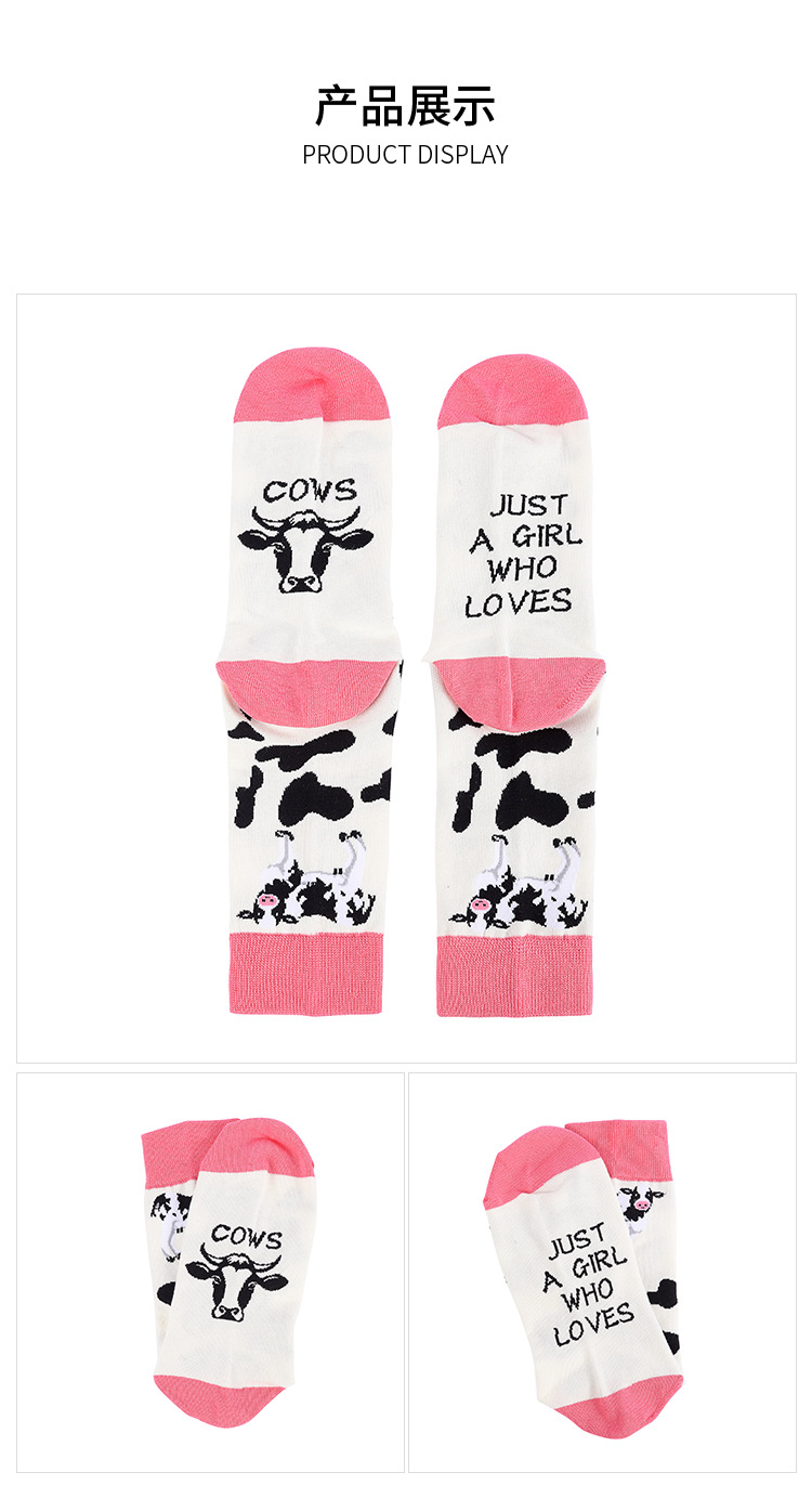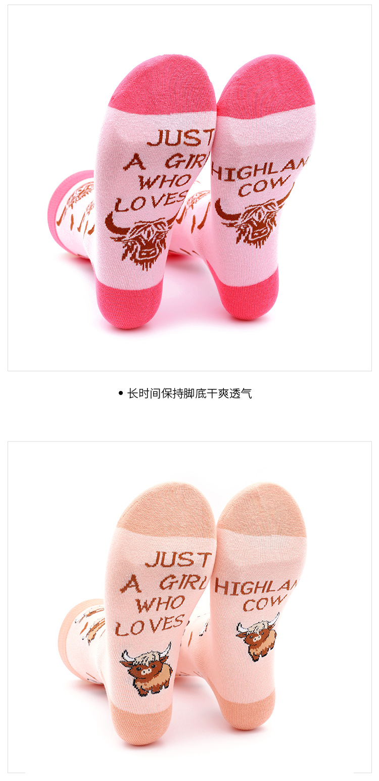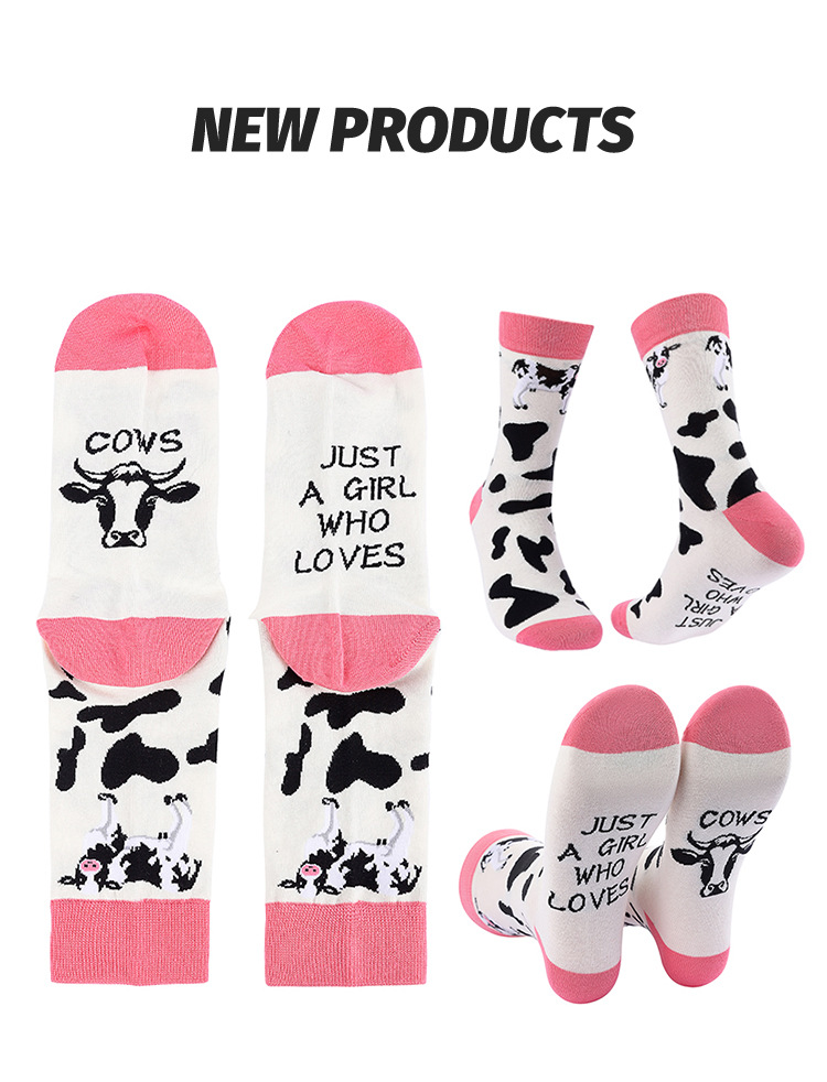 남녀공용 핑크색 소 무늬 중목 양말, 캐주얼 스포츠 발바닥 레터링 재미있는 양말 도매