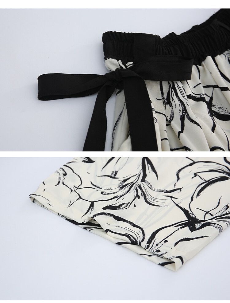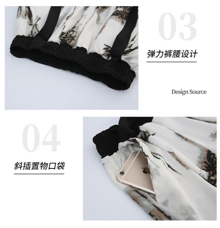 여자 중국 스타일 잉크 그림 넓은 다리 바지 세트 2025 새로운 여름 어린이 스트레이트 바지 투피스 세트스토어 가기