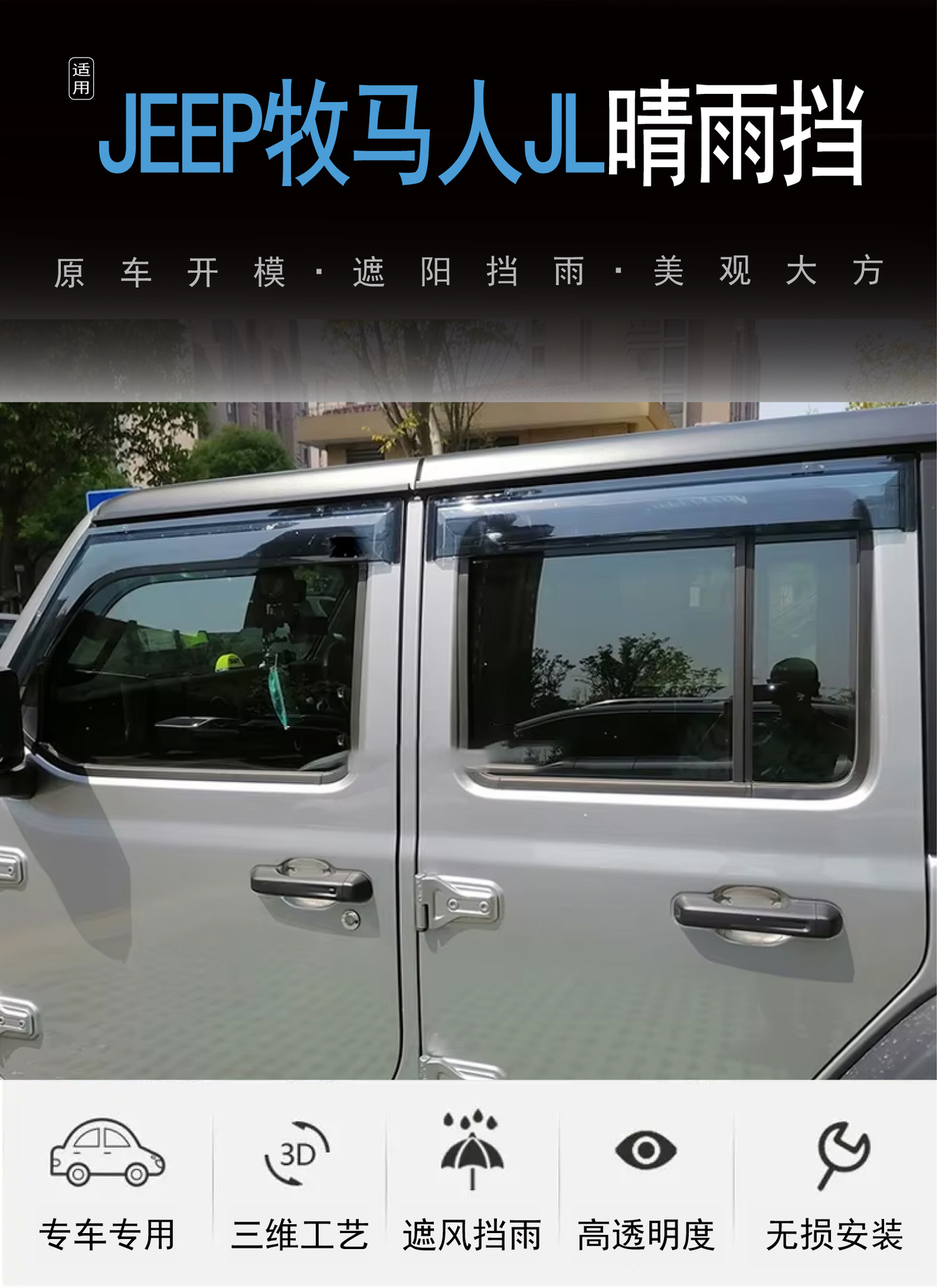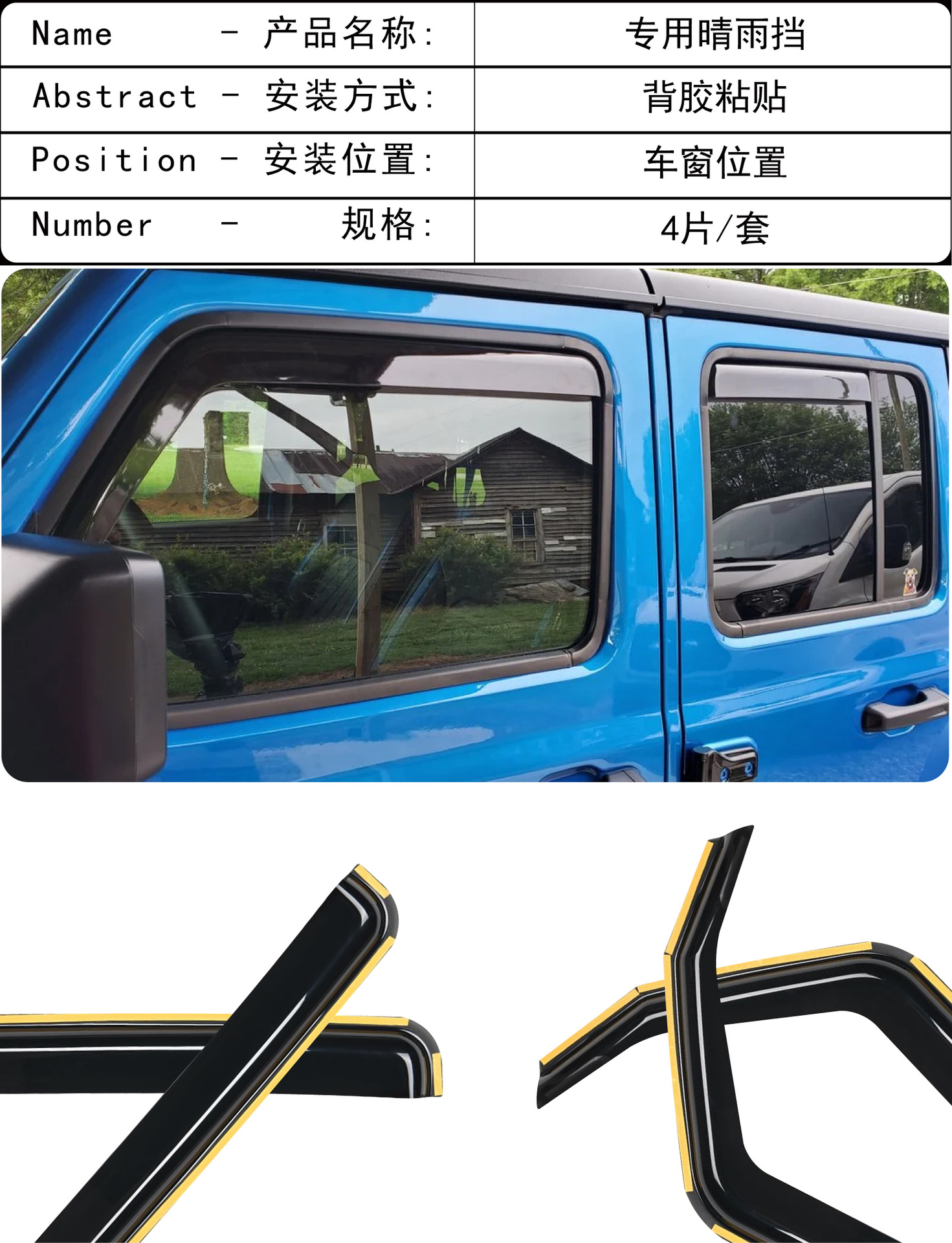 비 내장 자동차 비 방패를 차단하는 2018-2024 Jeep Wrangler JL 창의 국경 간 응용 프로그램스토어 가기