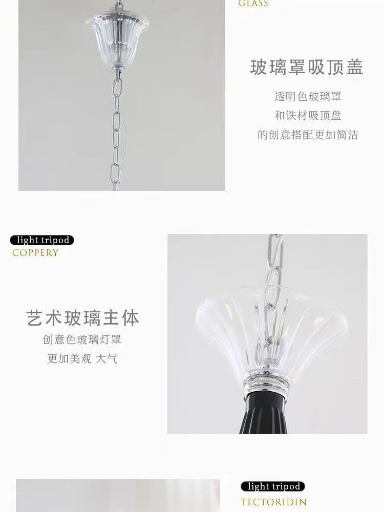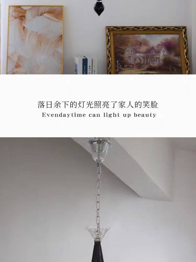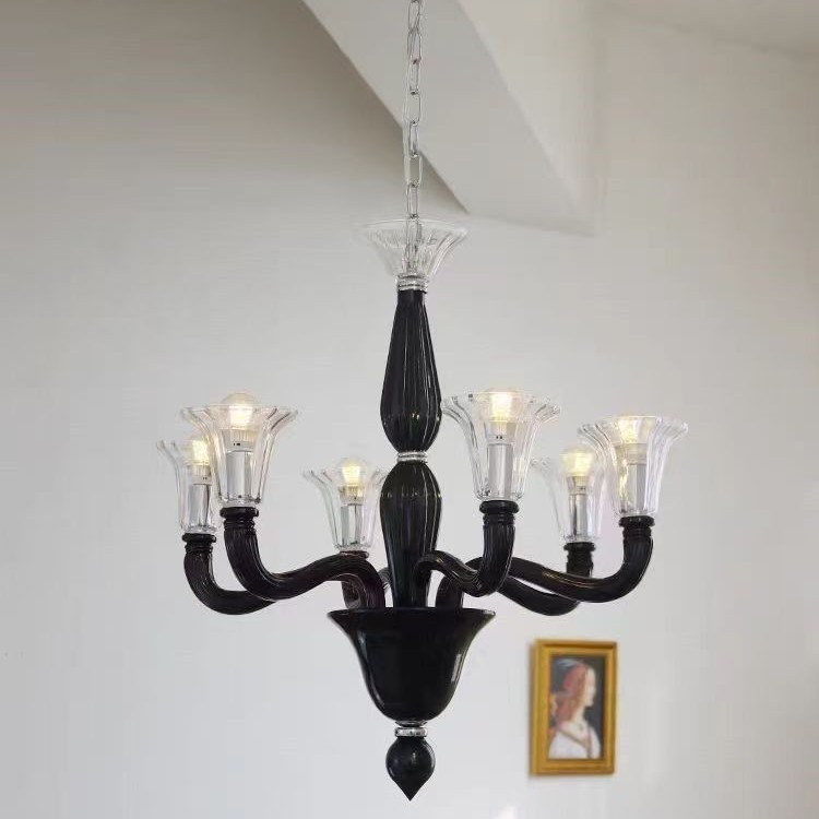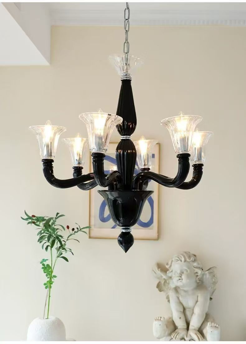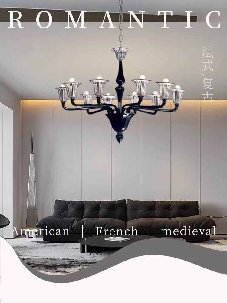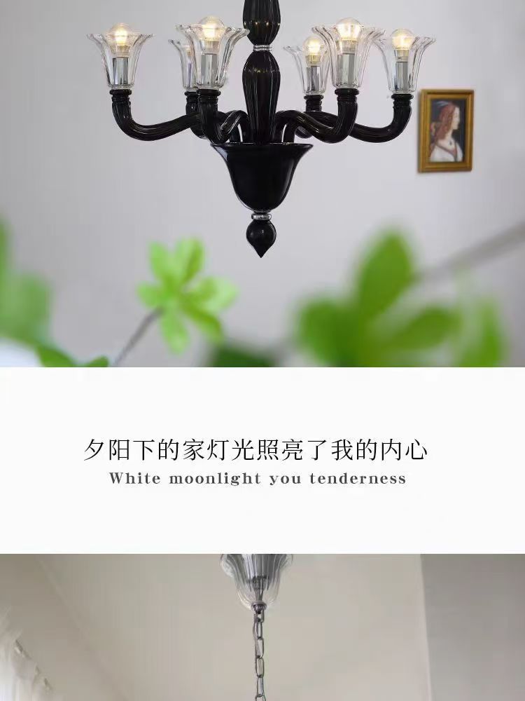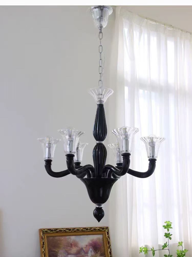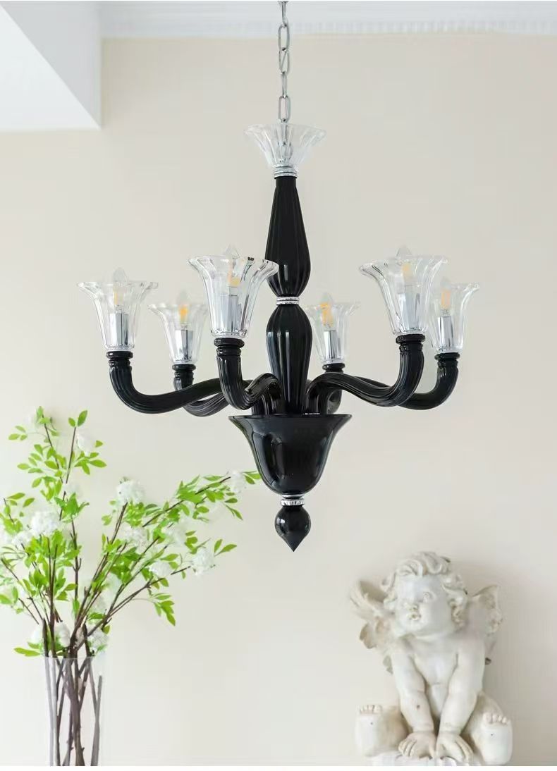 프렌치 엔트리 럭셔리 블랙 무라노 유리 샹들리에 디자이너 크리에이티브 아메리칸 스타일 복고풍 거실 침실 다이닝 룸 램프