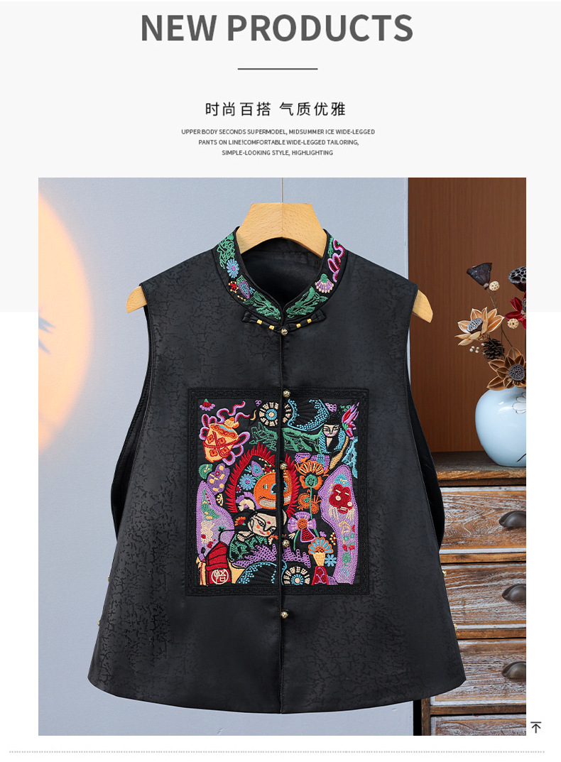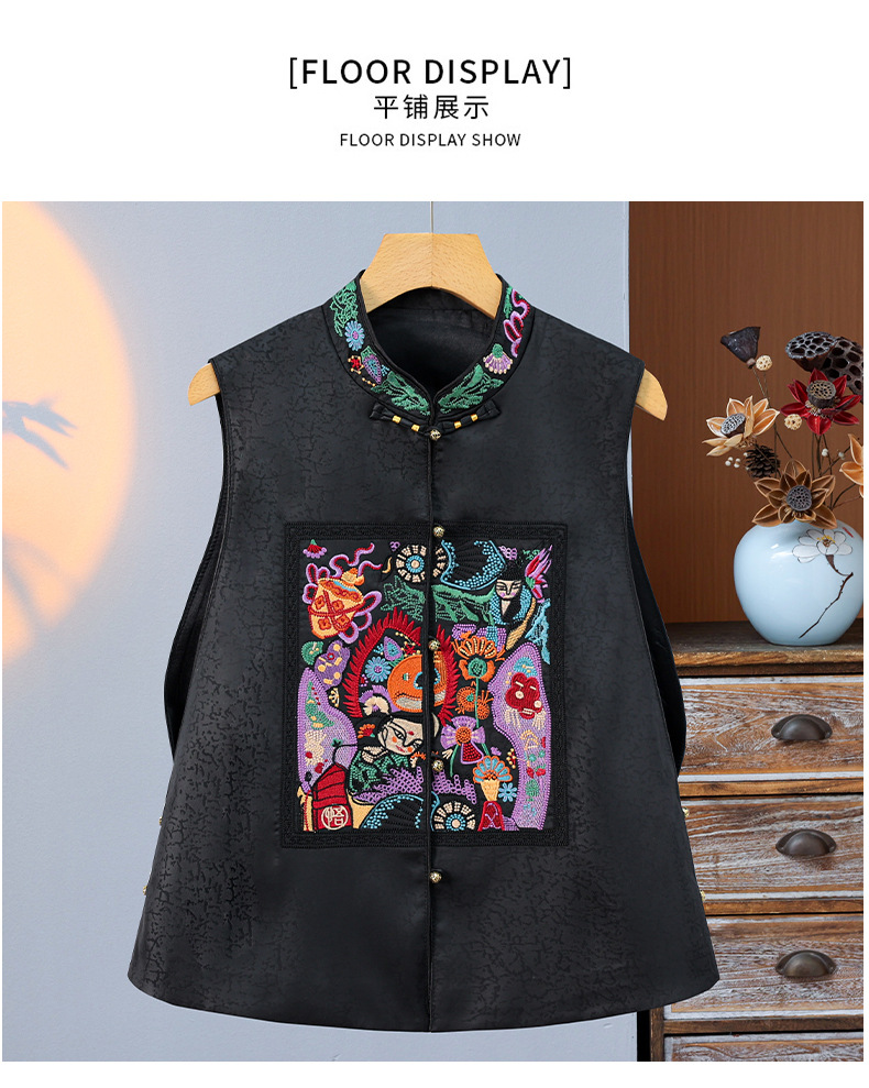 어머니의 봄 중국 스타일 조끼 자수 버클 수직 칼라 짧은 최고 여성 유행 우아한 고급 여성 의류스토어 가기