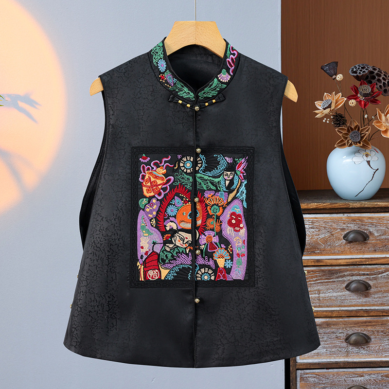 어머니의 봄 중국 스타일 조끼 자수 버클 수직 칼라 짧은 최고 여성 유행 우아한 고급 여성 의류