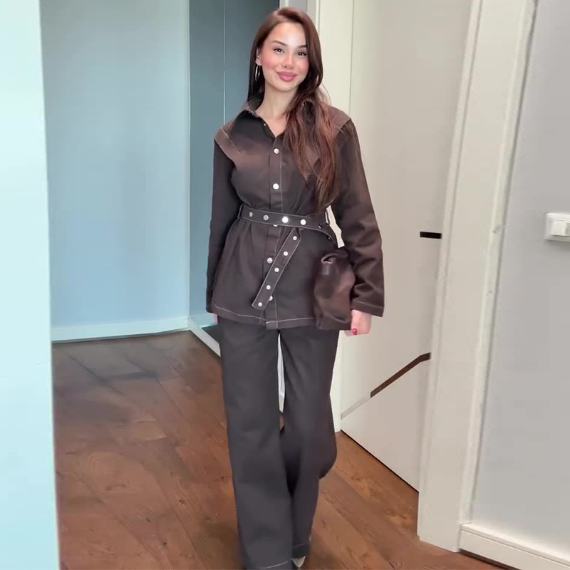 2025 유럽과 미국 아마존 국경 대외 무역 새로운 여성 긴 소매 데님 코트 + 넓은 다리 청바지 투피스 세트스토어 가기