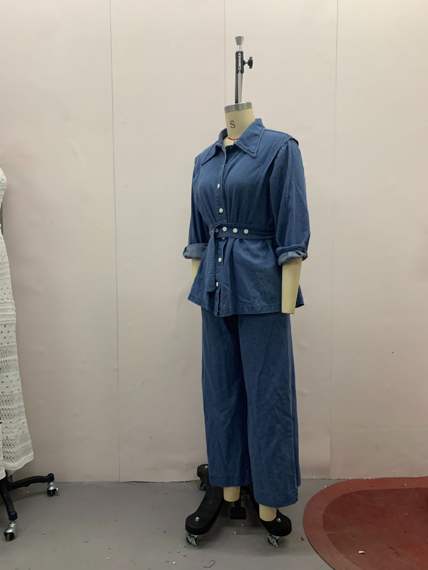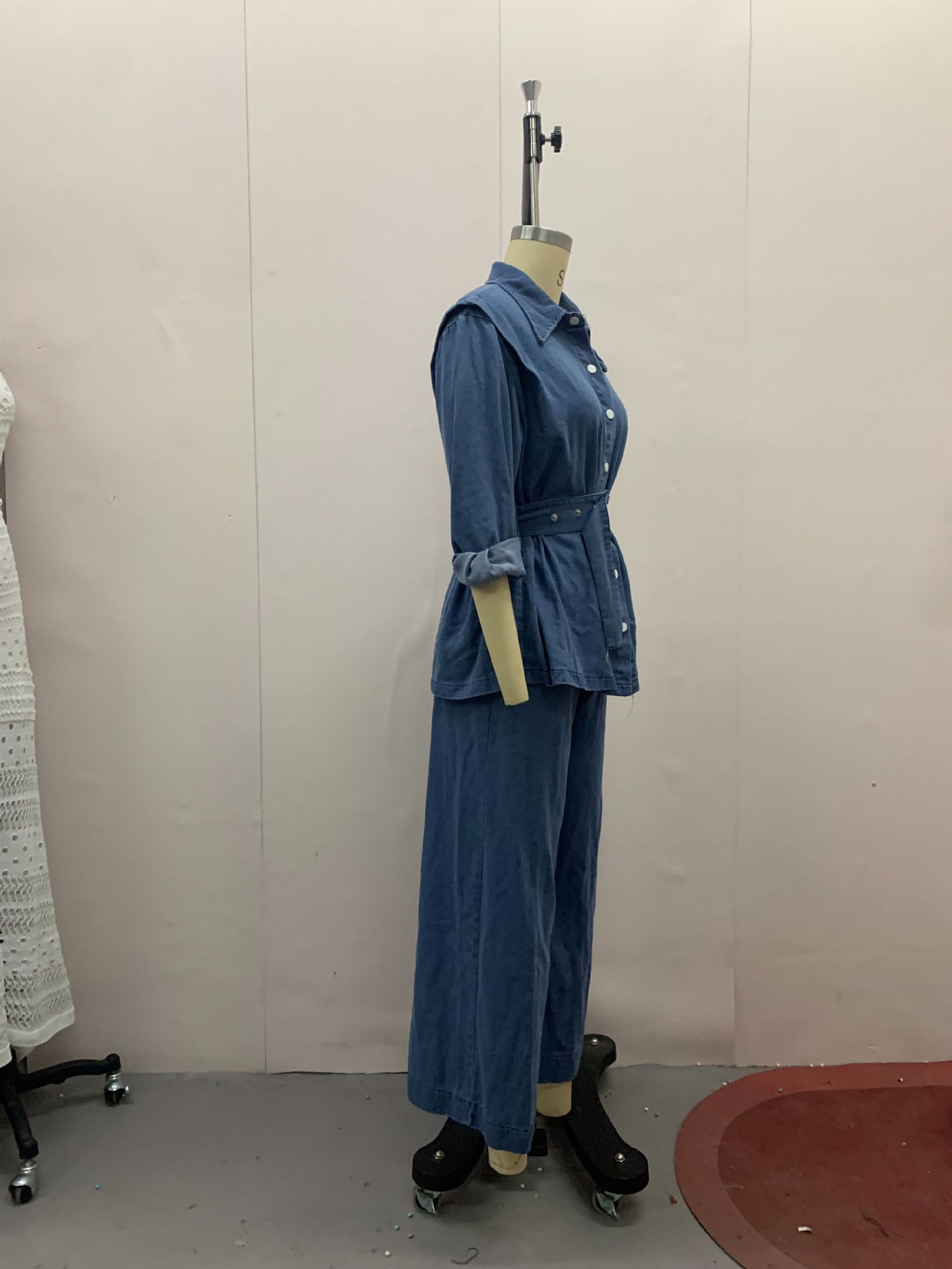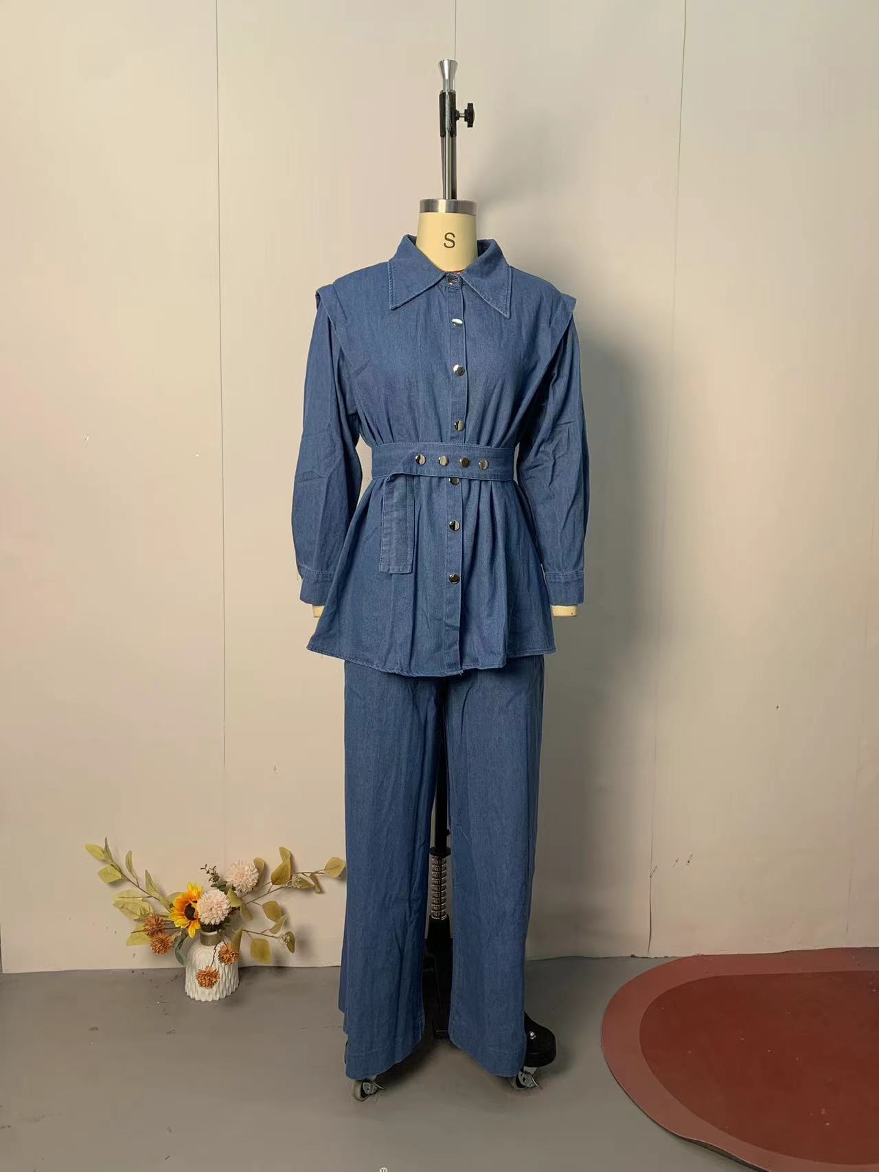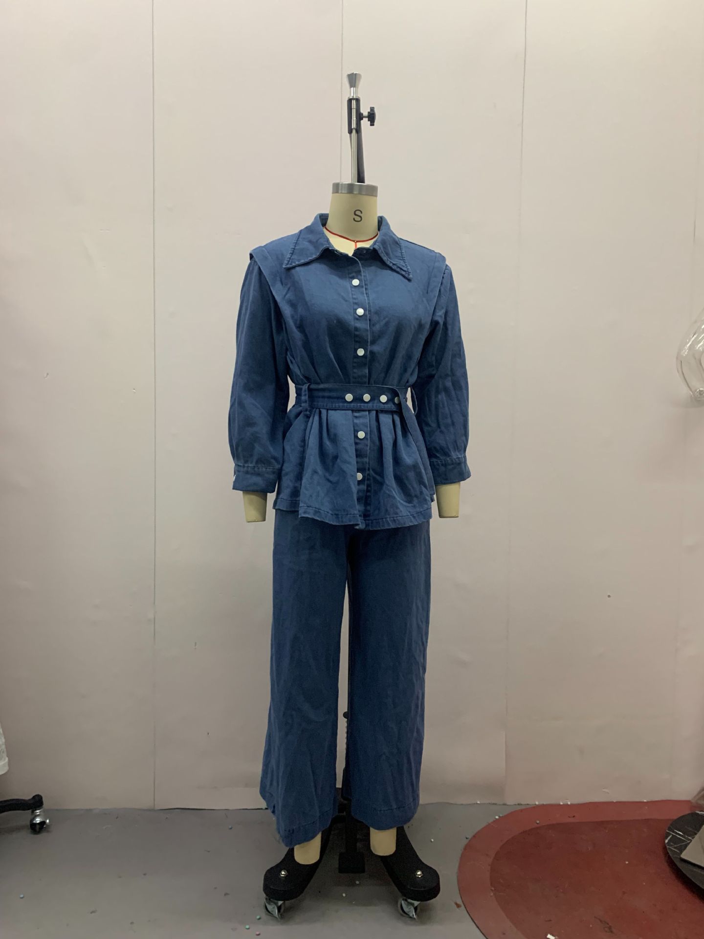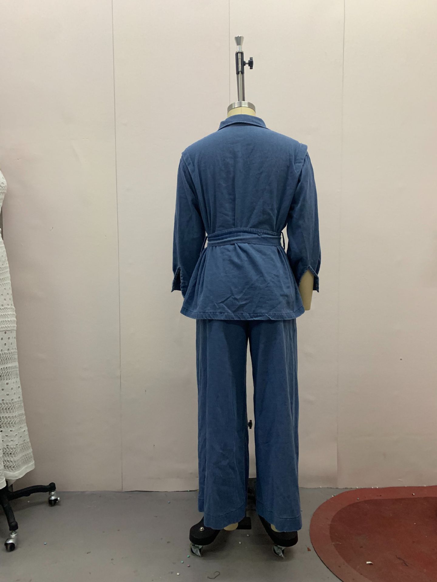 2025 유럽과 미국 아마존 국경 대외 무역 새로운 여성 긴 소매 데님 코트 + 넓은 다리 청바지 투피스 세트