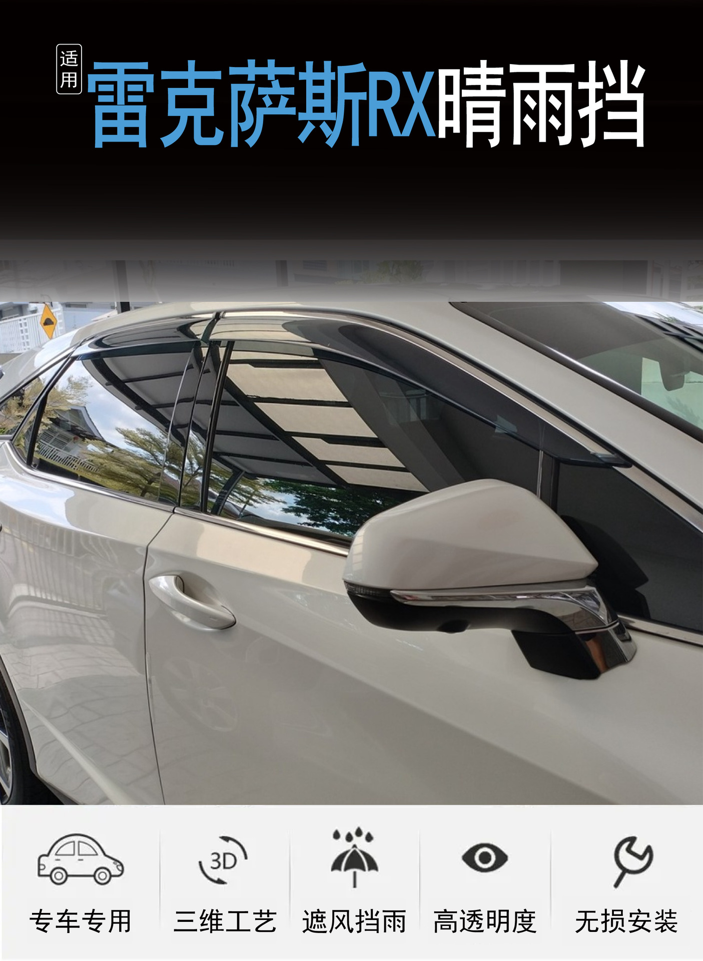 국경 간 응용 프로그램 2004-2024 Lexus RX300/350/500h 창은 비 자동차 비 방패를 차단합니다.