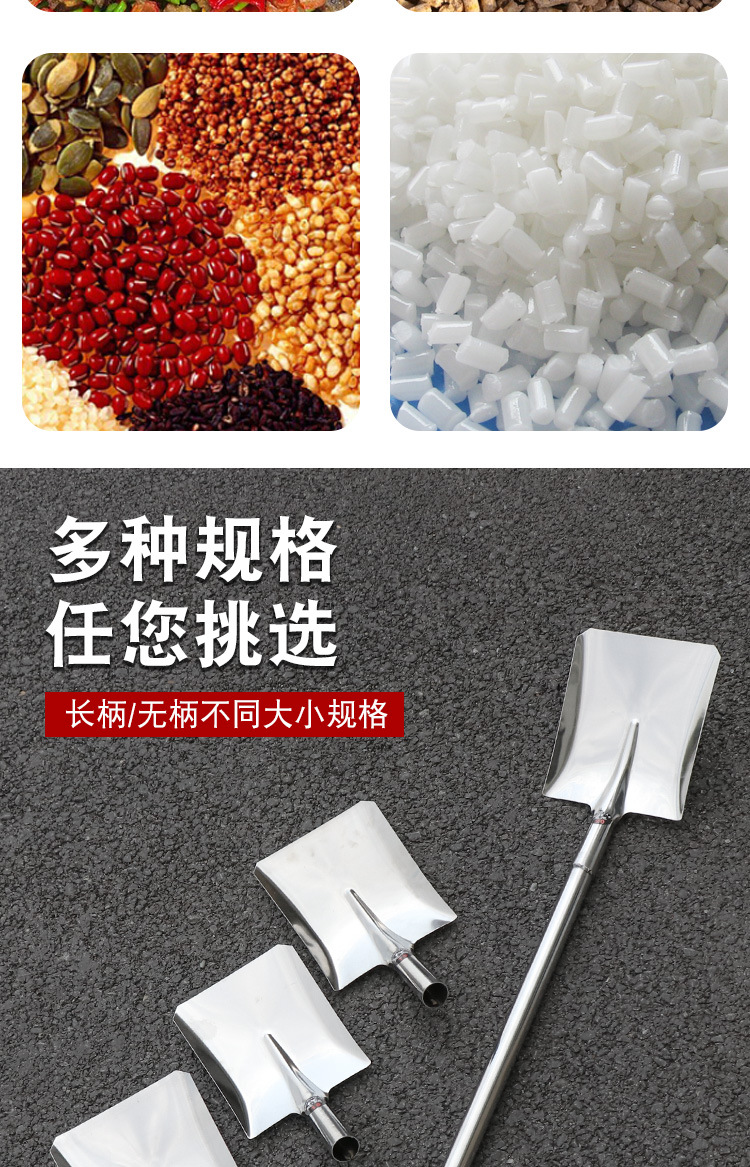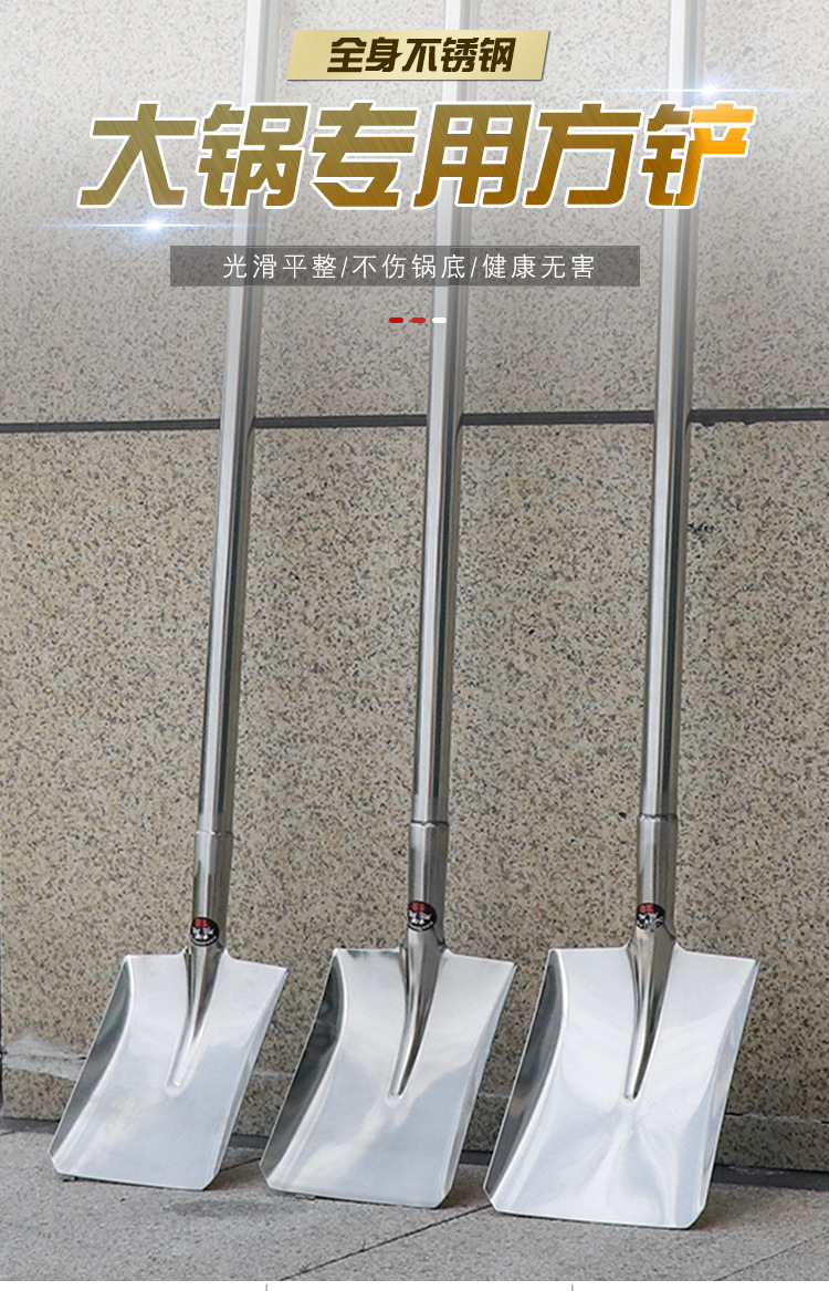 두꺼운 스테인레스 스틸 삽 외국 삽 매점 요리 농업 원예 덤핑 석탄 사각형 플레이트 삽 작은 큰 크기
