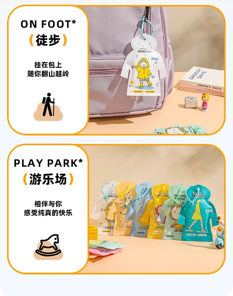 휴대용 일회용 투명 우비 성인 및 어린이용 두꺼운 모델 가방에 걸 수 있는 하이킹 우비 학생용 야외 방수스토어 가기
