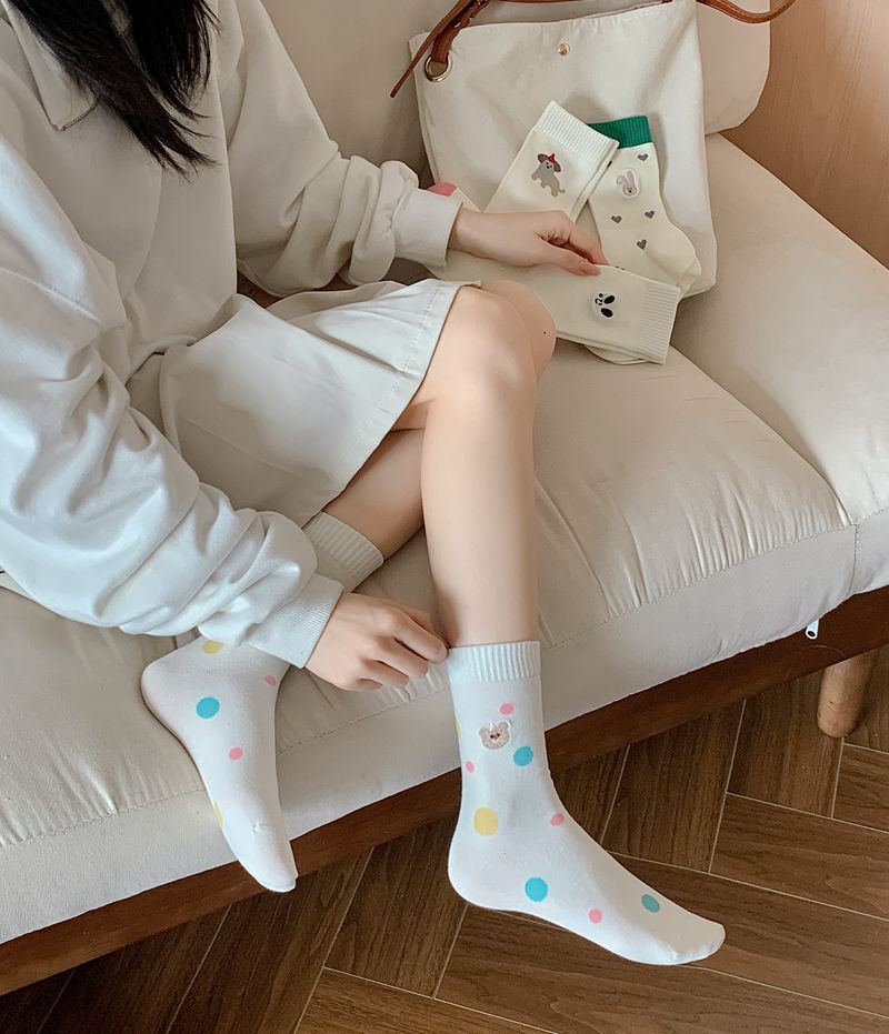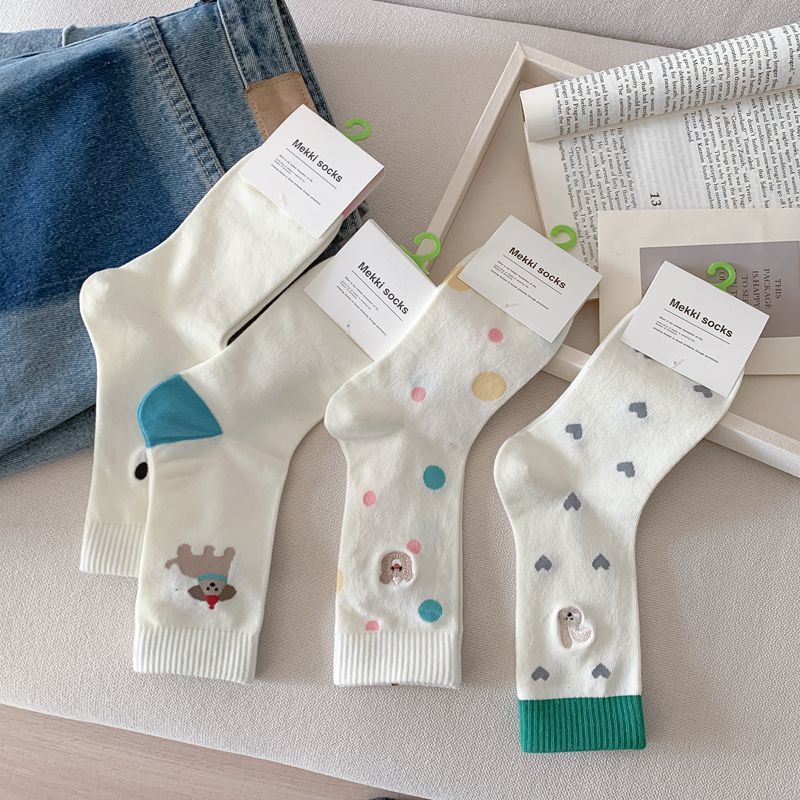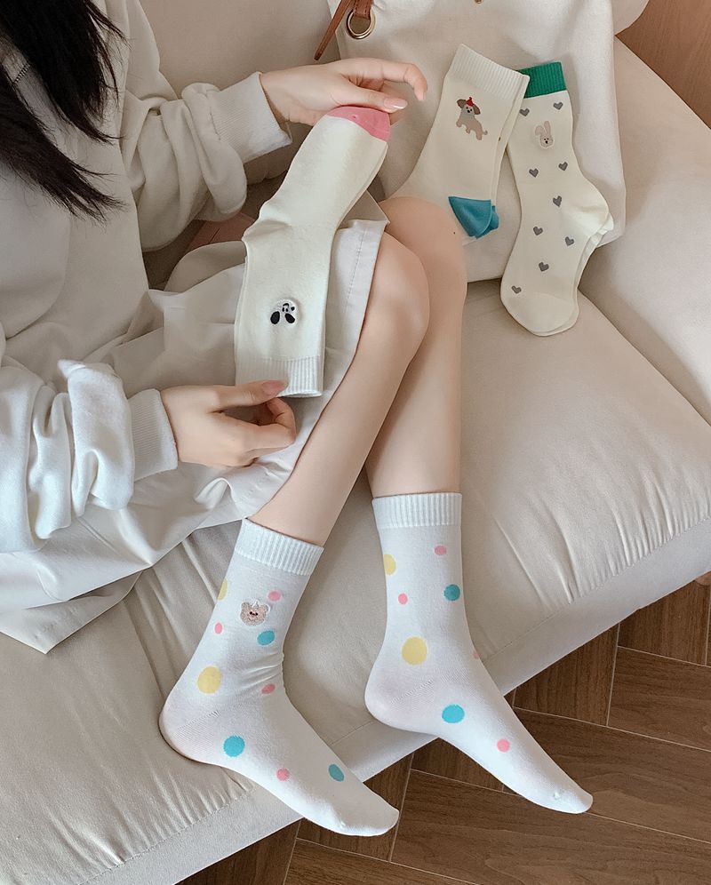 봄 새로운 캔디 컬러 귀여운 강아지 자수 아카데미 스타일 튜브 양말 여성의 얇은 코튼 여성 만화 여성 양말스토어 가기