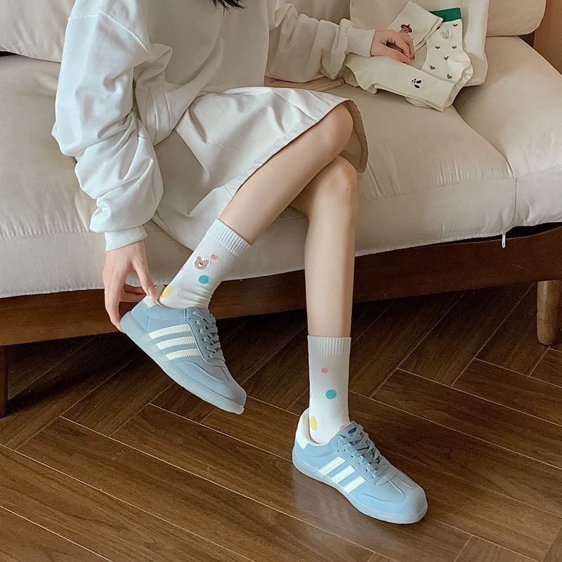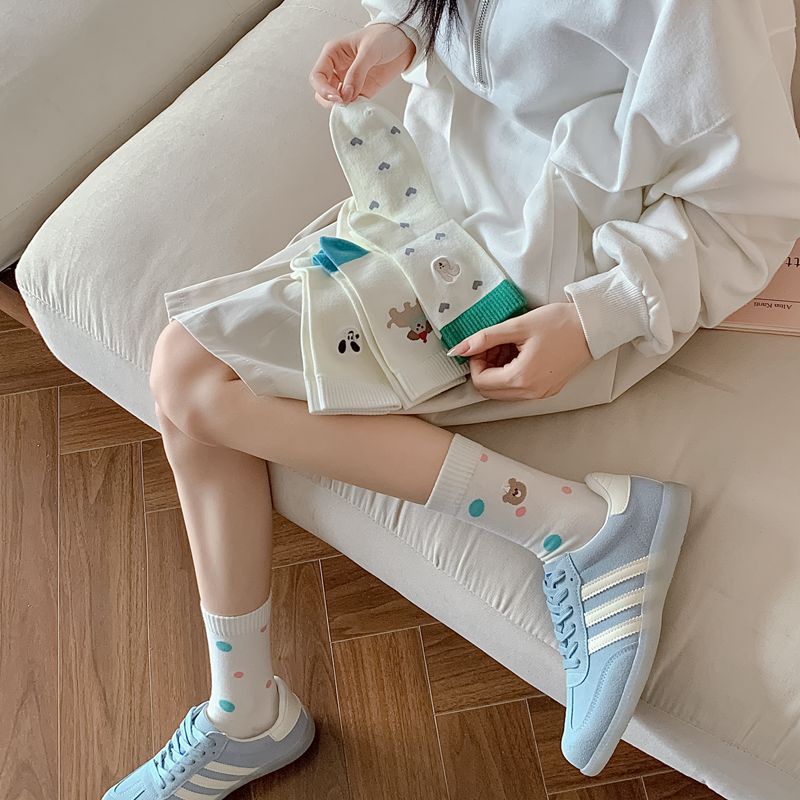 봄 새로운 캔디 컬러 귀여운 강아지 자수 아카데미 스타일 튜브 양말 여성의 얇은 코튼 여성 만화 여성 양말