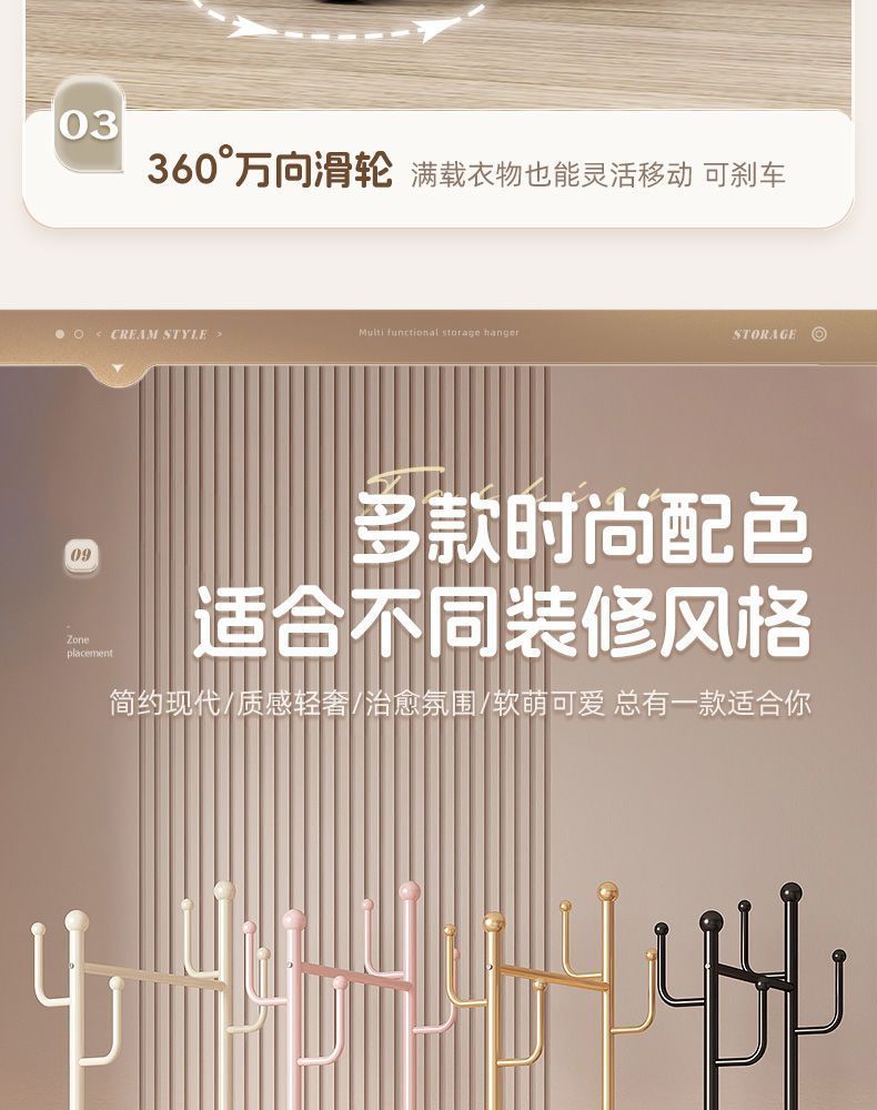 [3382 컬렉션] 옷걸이 바닥 침실 옷걸이 이동식 휠 가정용 거실 가벼운 고급 옷 건조