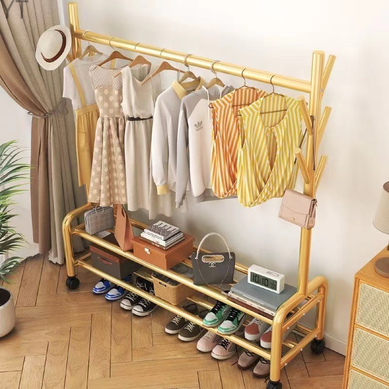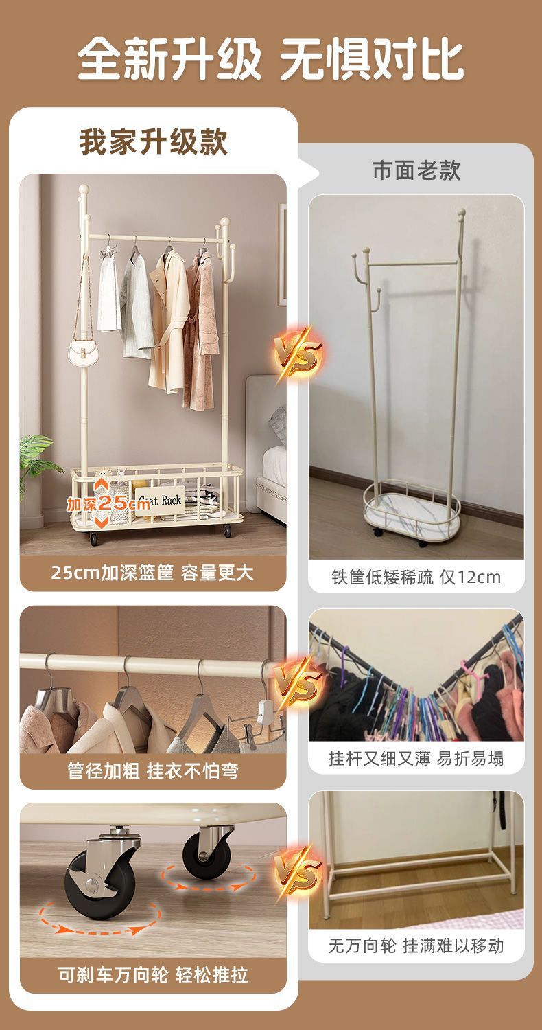 [3382 컬렉션] 옷걸이 바닥 침실 옷걸이 이동식 휠 가정용 거실 가벼운 고급 옷 건조스토어 가기