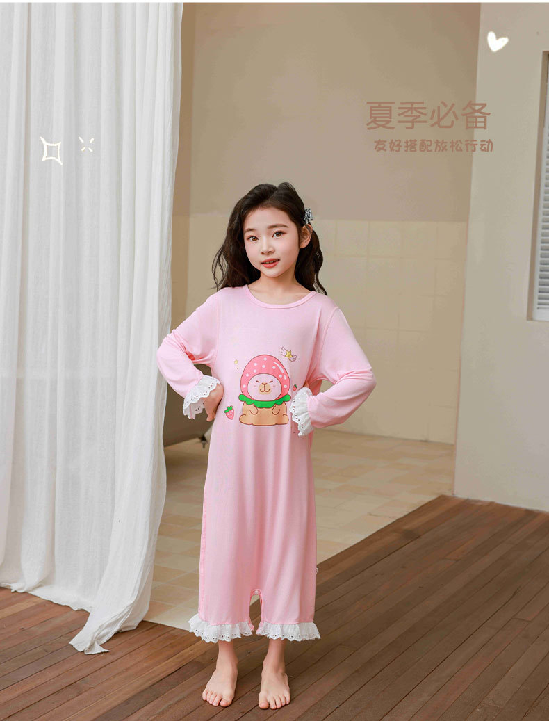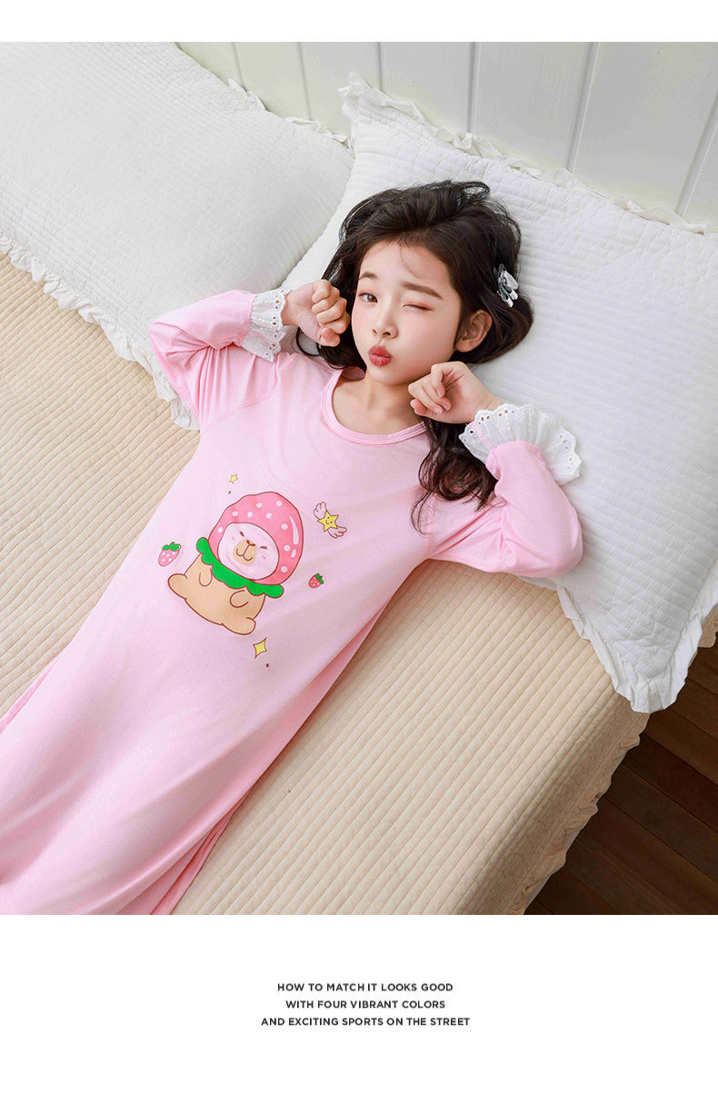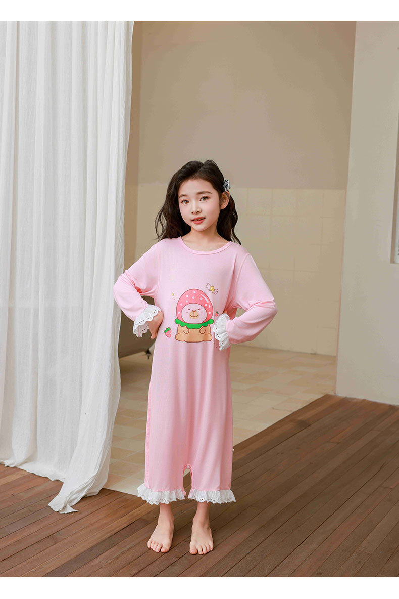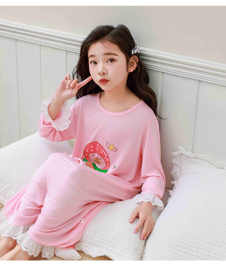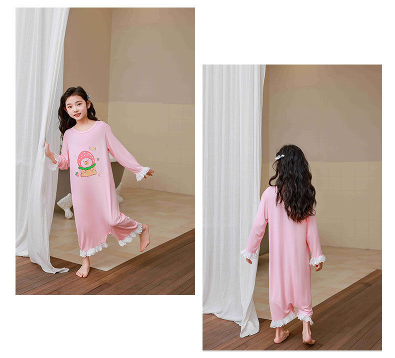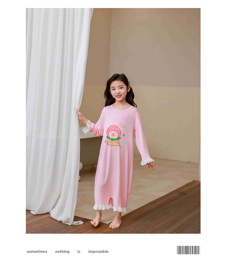 어린이 집 잠옷 한국 여자 긴팔 잠옷 여자 깨진 레이스 점프 수트는 머리카락 세대를 지원합니다스토어 가기