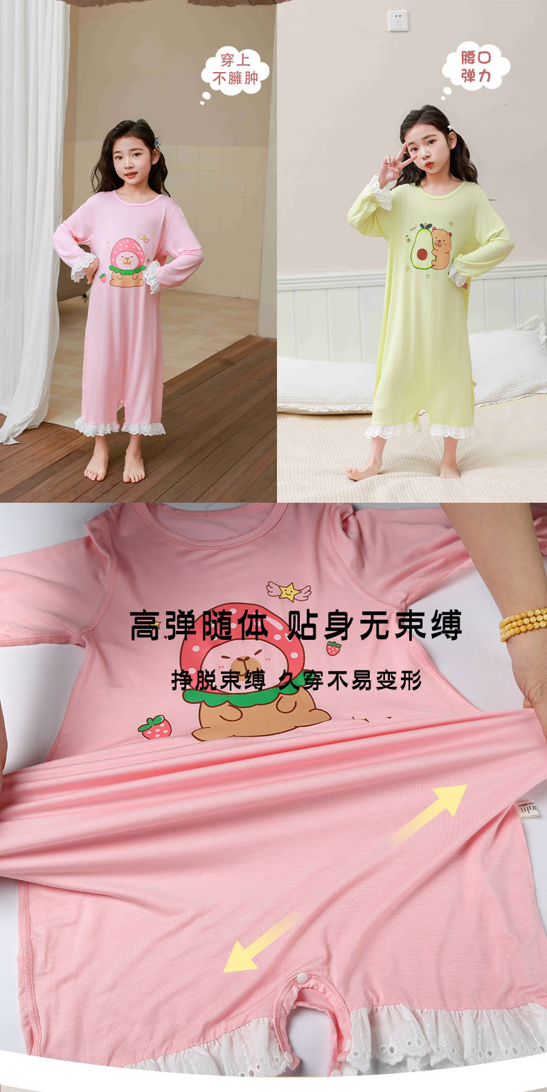 어린이 집 잠옷 한국 여자 긴팔 잠옷 여자 깨진 레이스 점프 수트는 머리카락 세대를 지원합니다