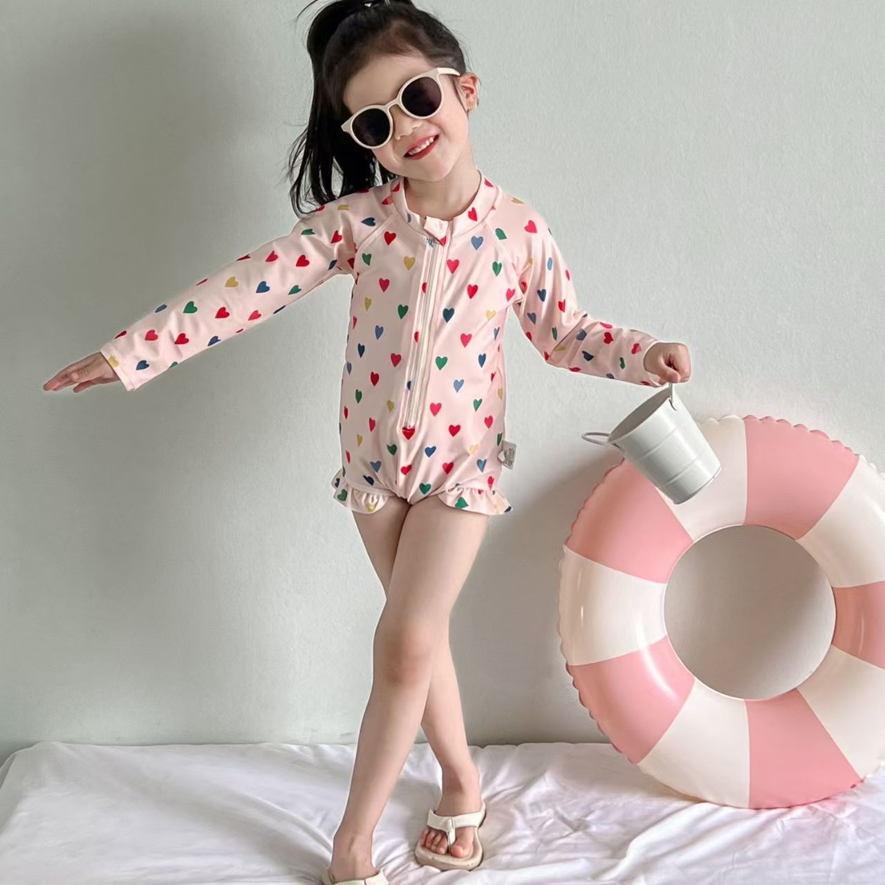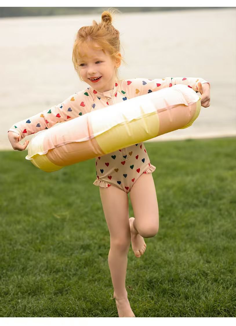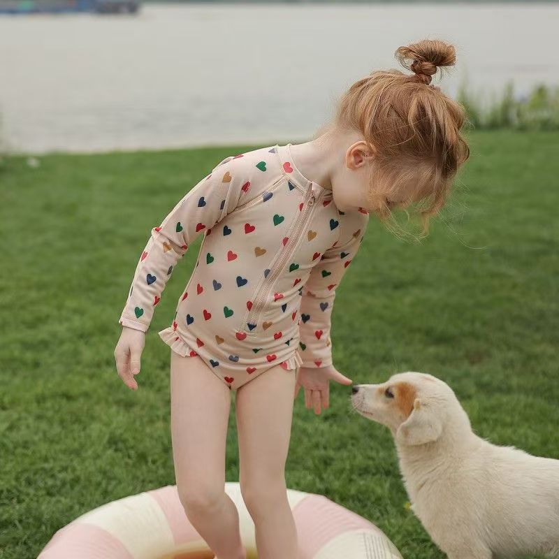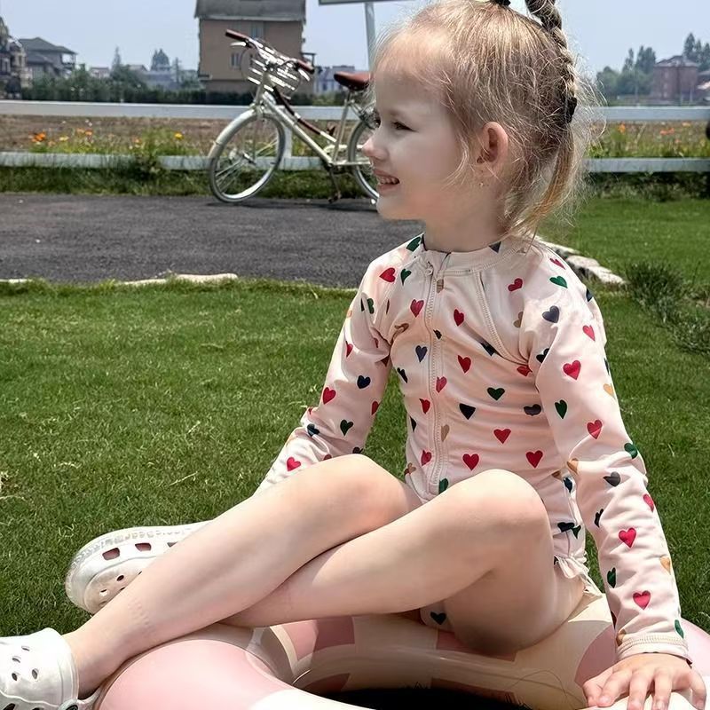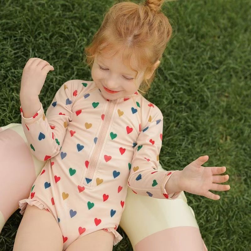 2025년 신상 여아용 인스 스타일 원피스 수영복 온천 여름옷 어린이 꽃무늬 자외선 차단 속건 긴팔스토어 가기