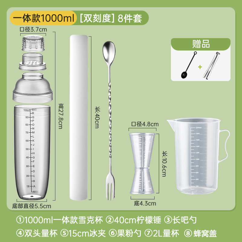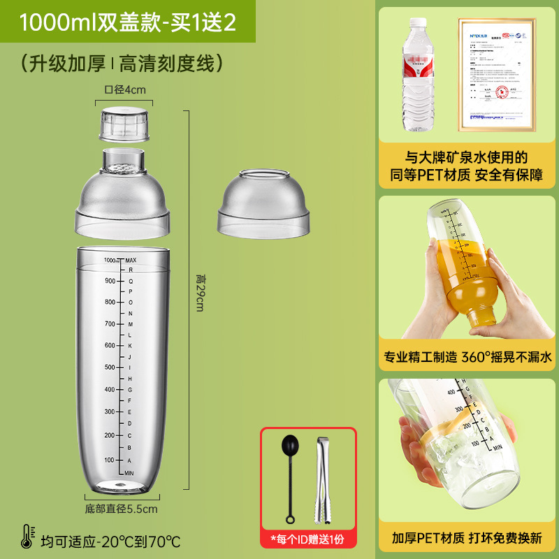 • [단일 커버 업그레이드 및 두꺼운 버전] 1000ML(손상 보장)에는 아이스 클립과 과일 파우더가 함께 제공됩니다.