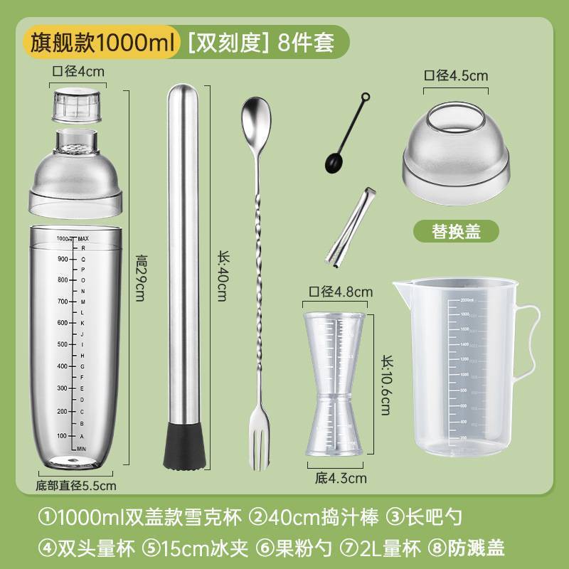 • [플래그십 8종세트] 1000ML/40cm 주스스틱/롱바스푼/양두계량컵/2개