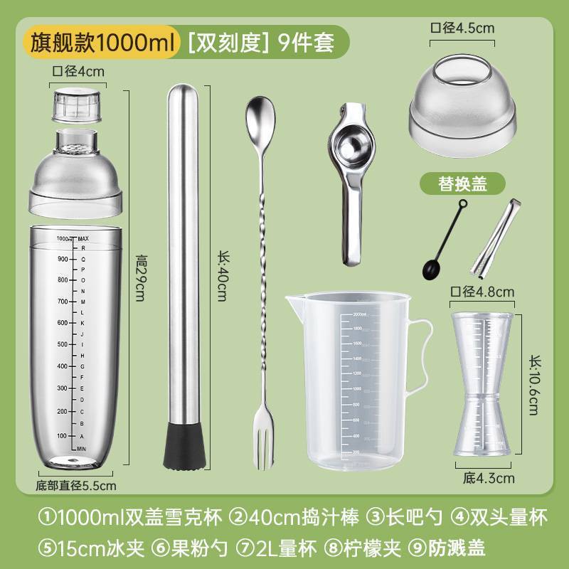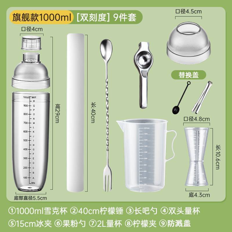 • [플래그십 9종세트] 1000ML/40cm 주스스틱/롱바스푼/양두계량컵/2개