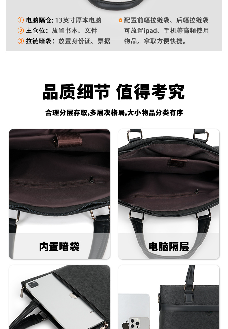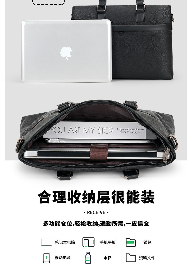 고급 남성용 노트북 서류가방 비즈니스 통근용 남성용 가방 부드러운 가죽 U형 숄더 노트북 가방스토어 가기