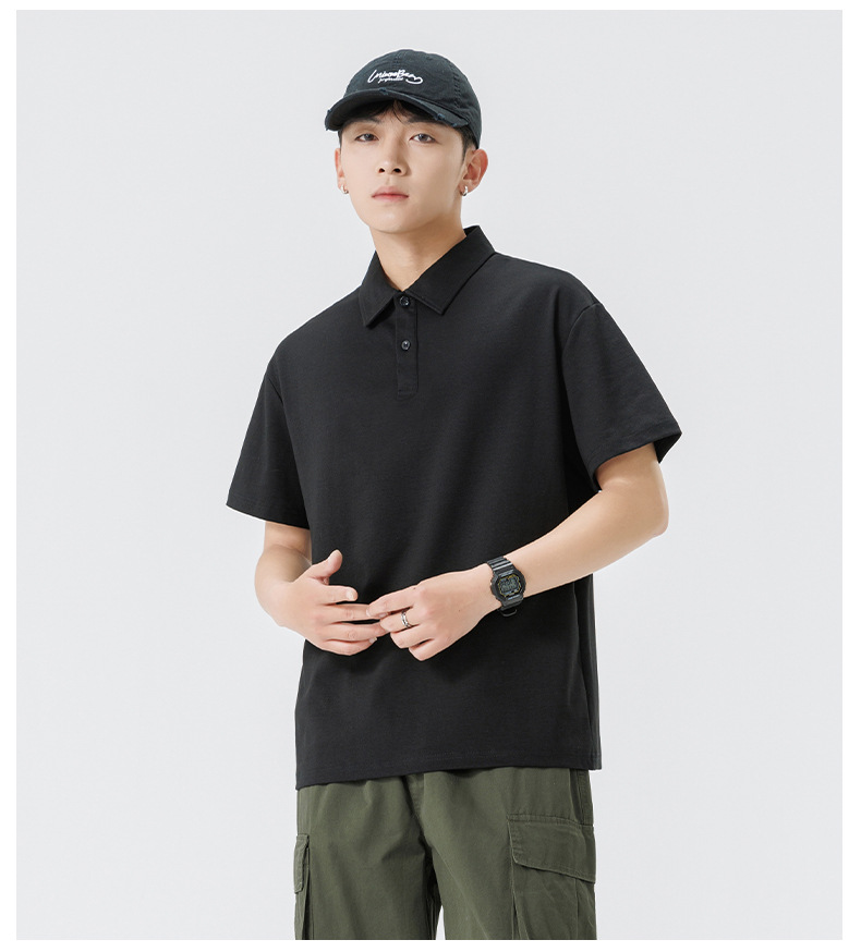 헤비 솔리드 컬러 남성 반팔 폴로 셔츠 여름 신작 기본 편안한 통근 비즈니스 옷깃 남성 티셔츠