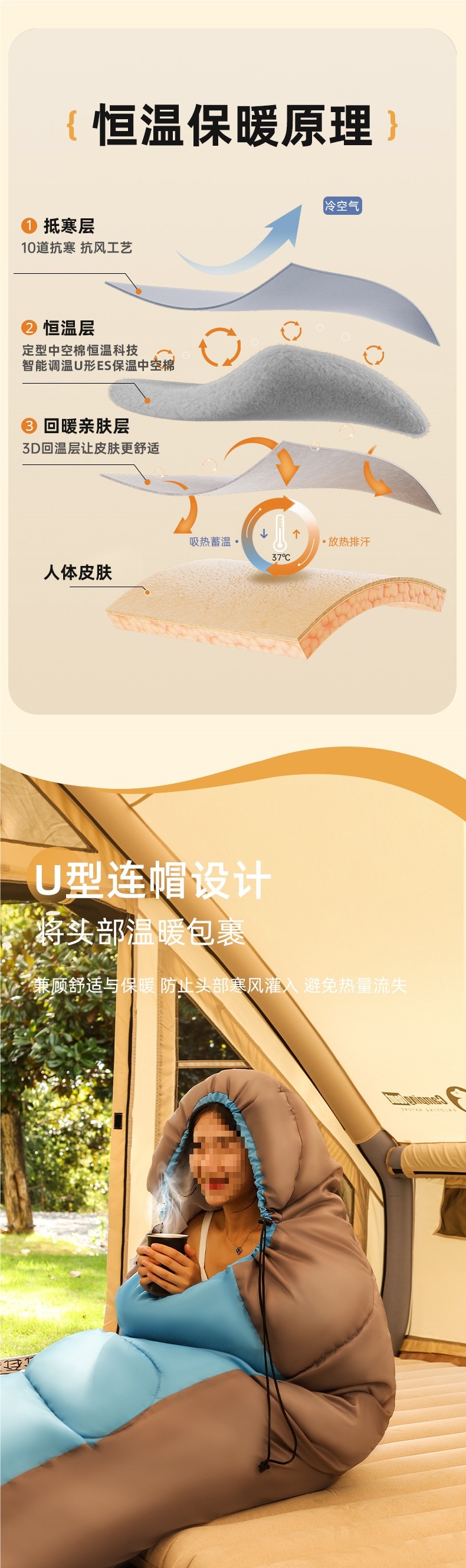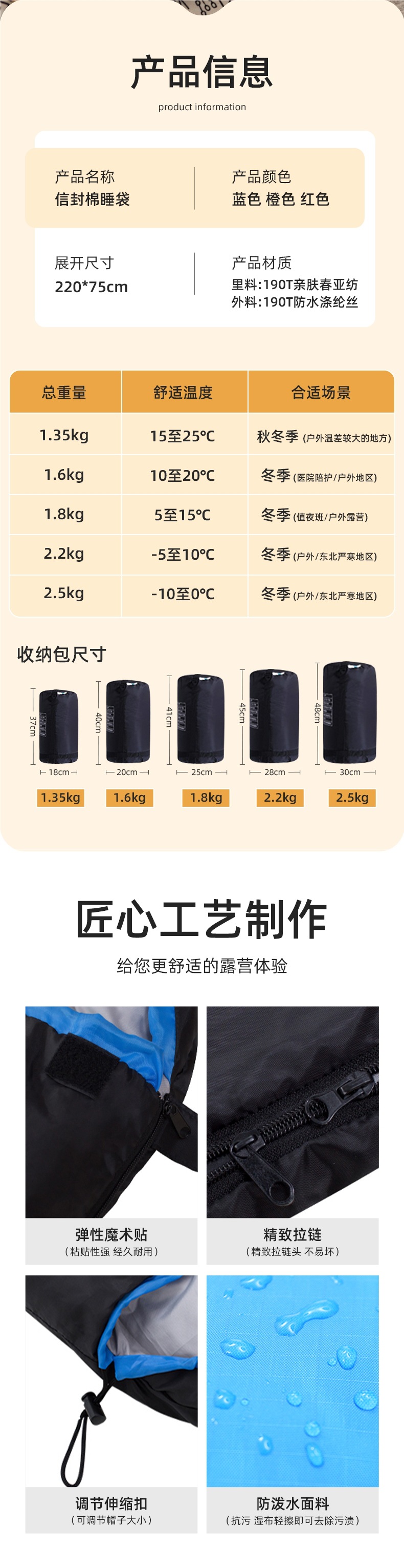 잠자기 가방 성인 야외 캠핑 사계절 냉방성 사무실 점심 식사 캠핑 밤새 방한 휴대용스토어 가기