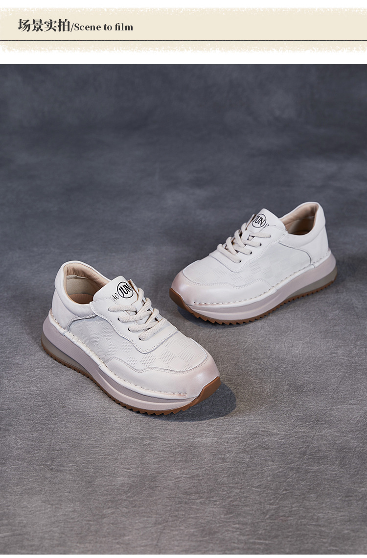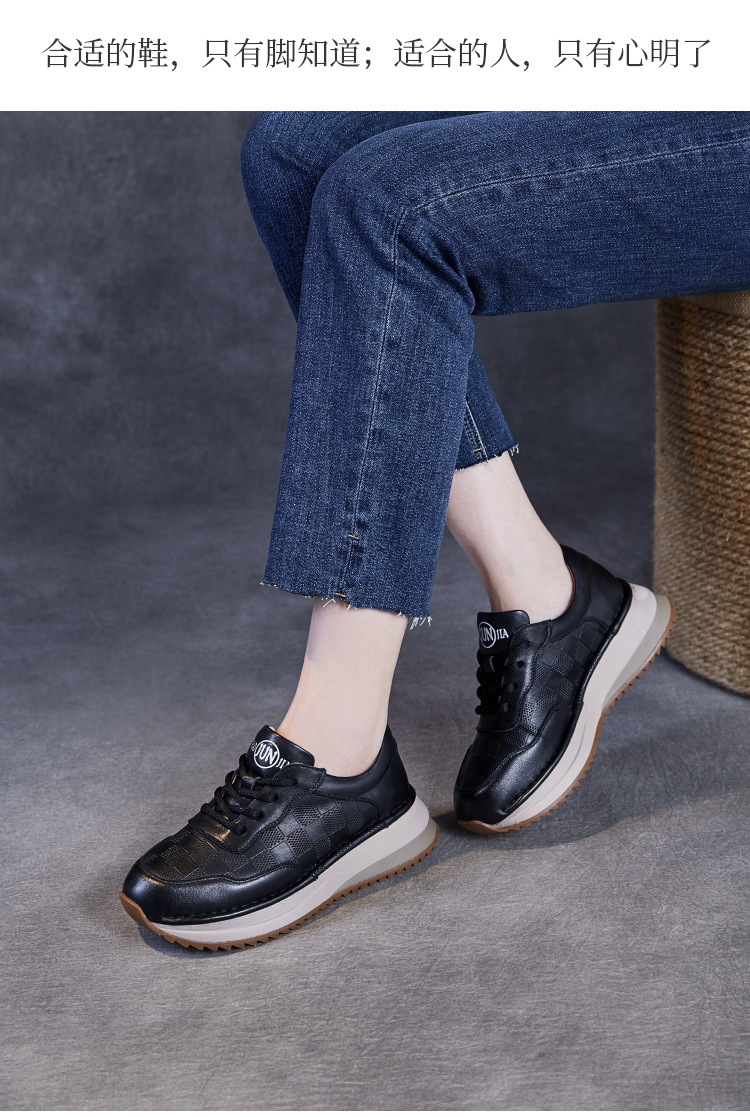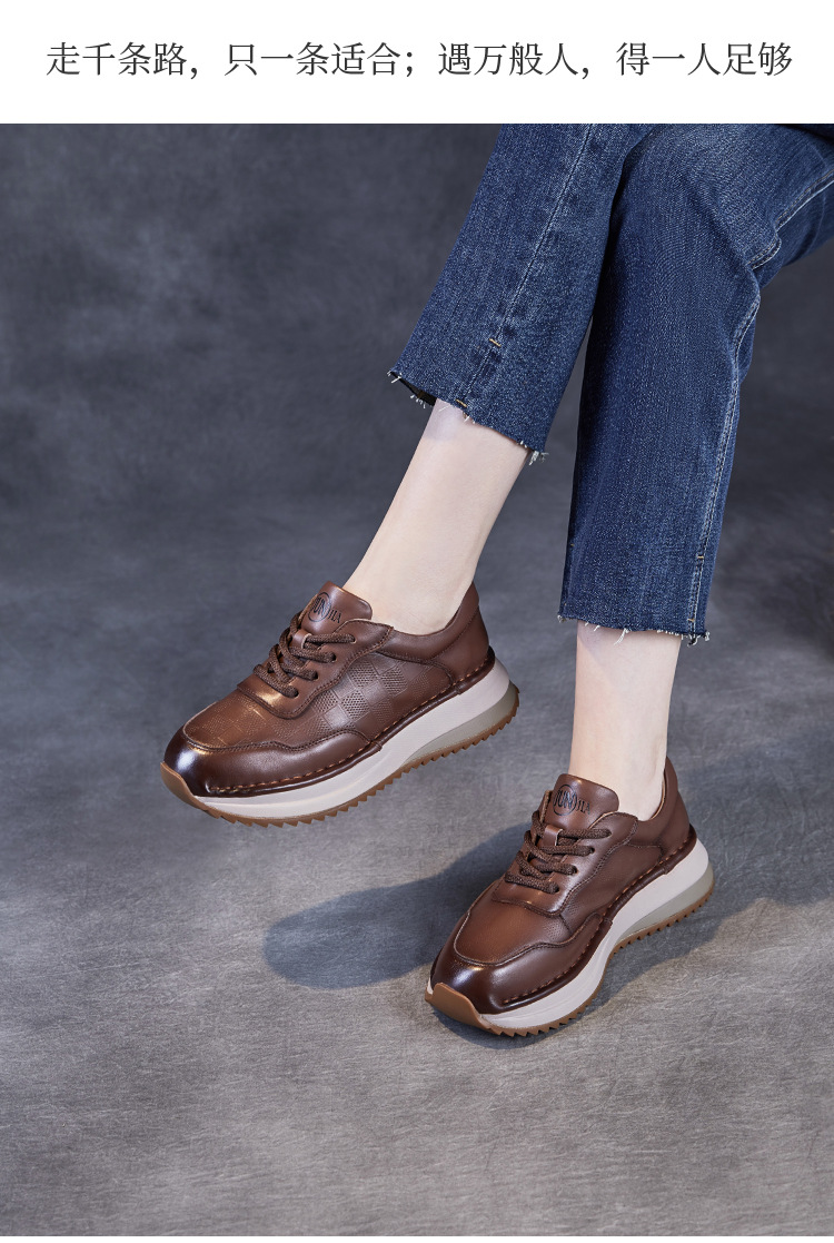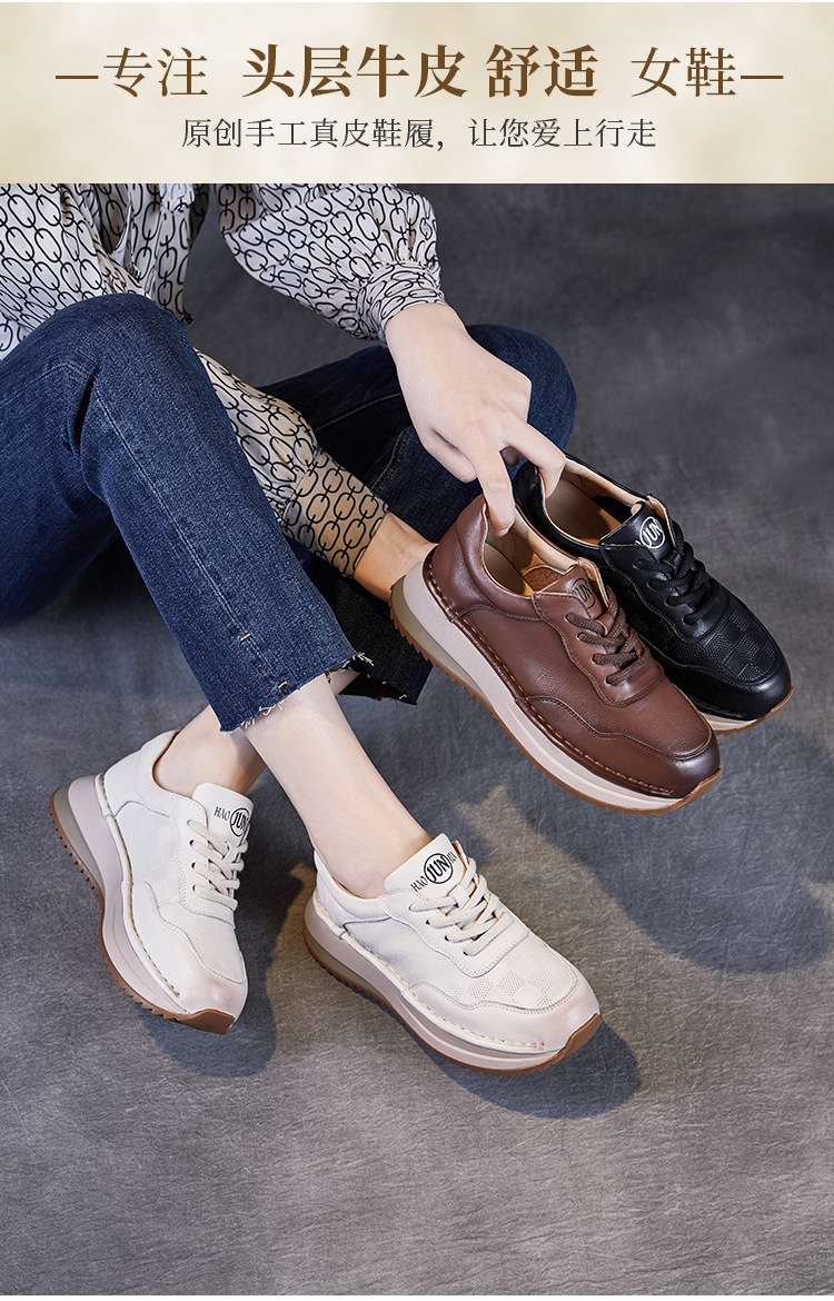 뷰티 여성 신발 봄 새로운 고급 Cowhide 스포츠 포레스트 검프 신발 두꺼운 밑창 정품 가죽 캐주얼 레이스 업 가죽 신발스토어 가기
