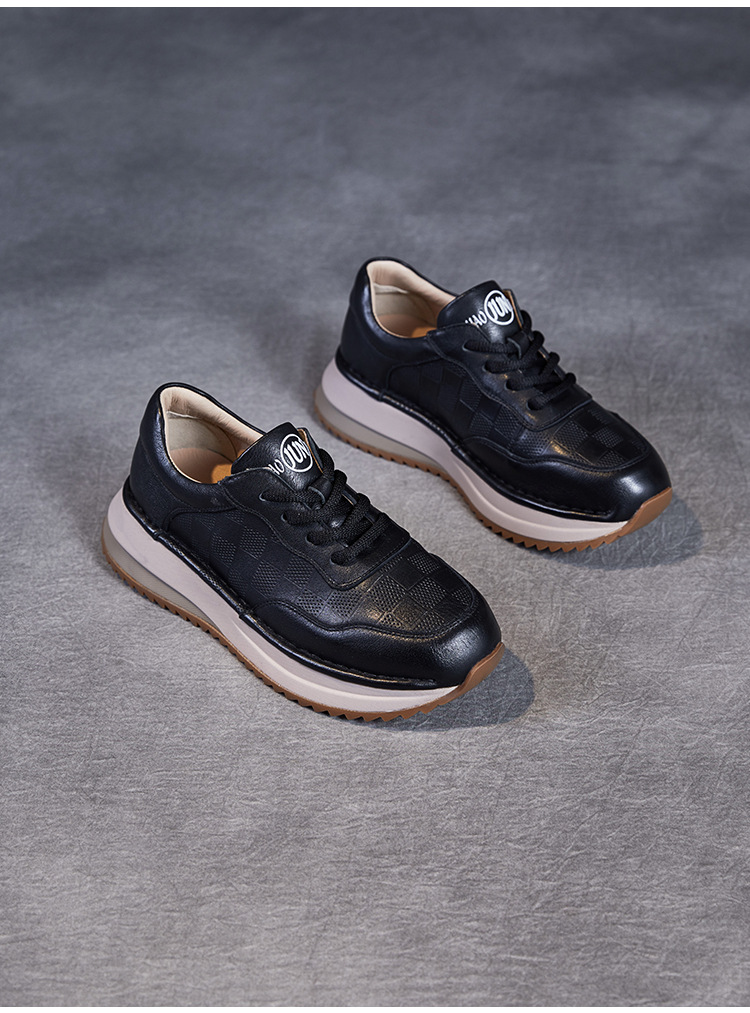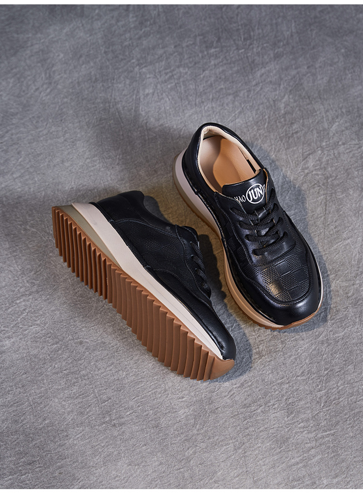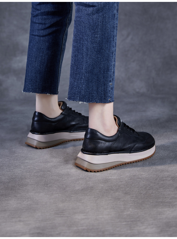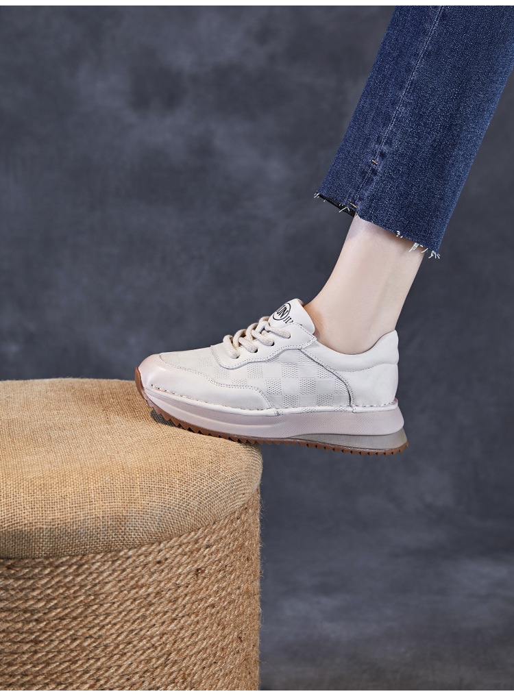 뷰티 여성 신발 봄 새로운 고급 Cowhide 스포츠 포레스트 검프 신발 두꺼운 밑창 정품 가죽 캐주얼 레이스 업 가죽 신발스토어 가기