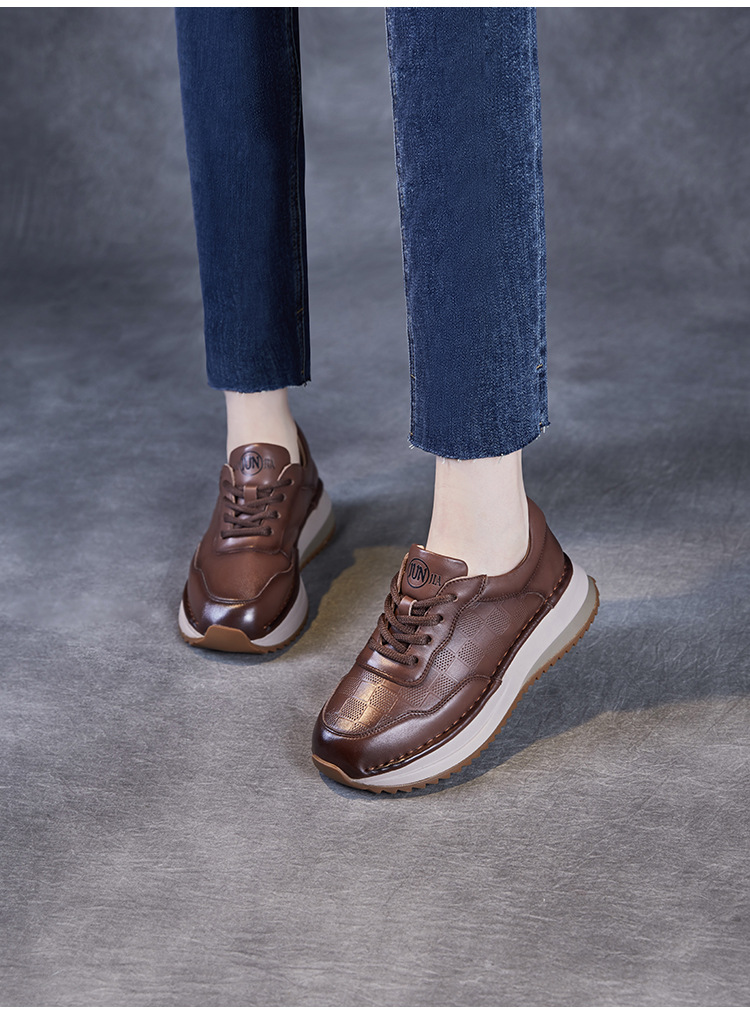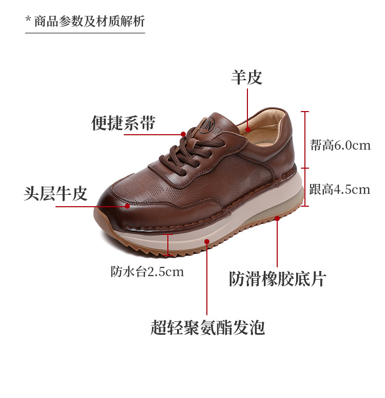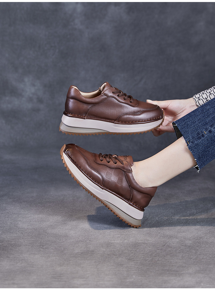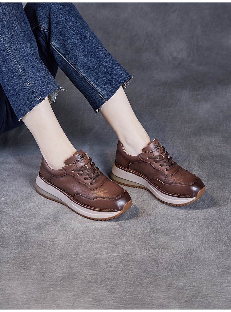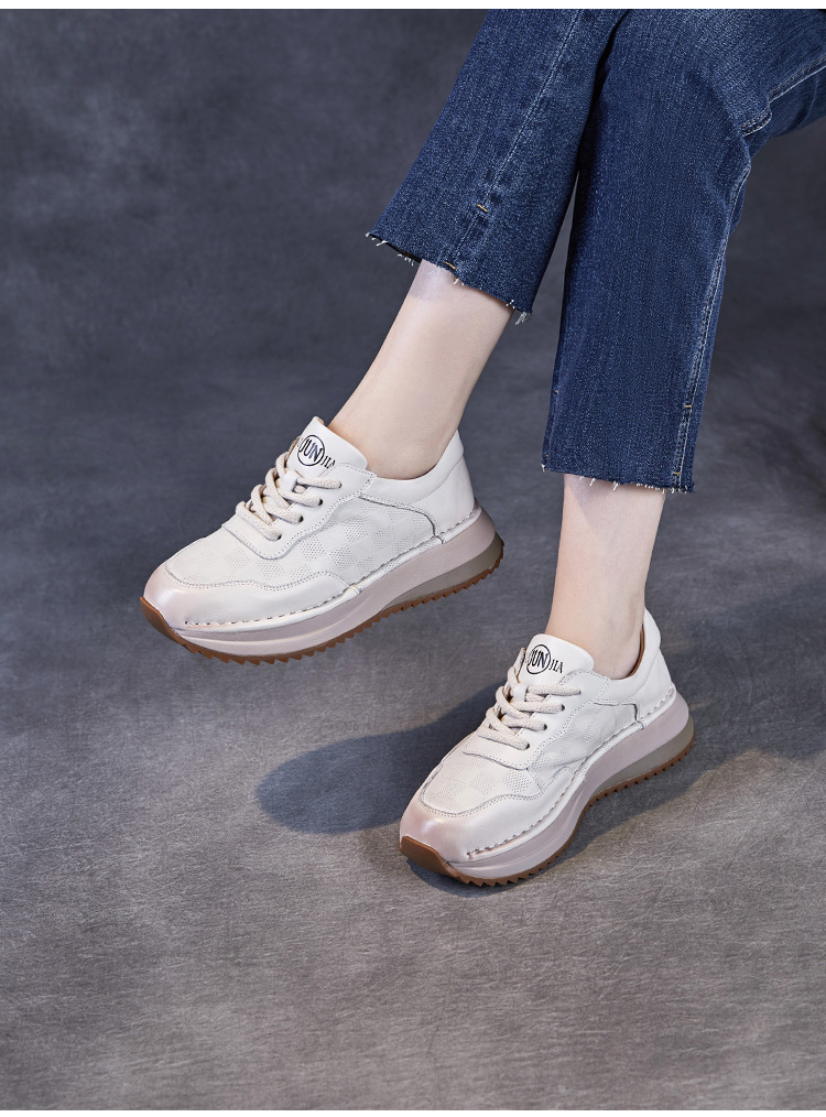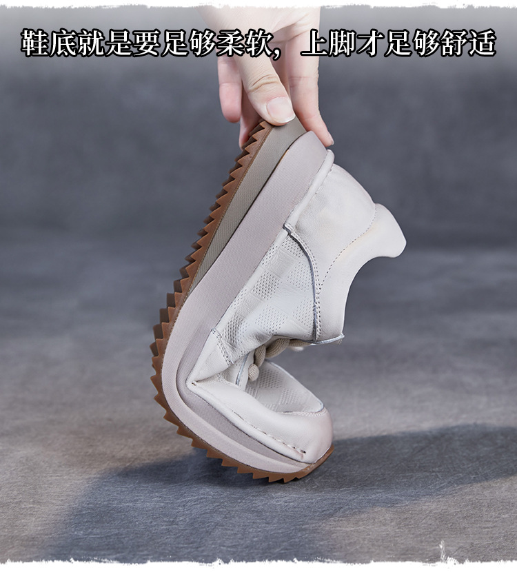 뷰티 여성 신발 봄 새로운 고급 Cowhide 스포츠 포레스트 검프 신발 두꺼운 밑창 정품 가죽 캐주얼 레이스 업 가죽 신발