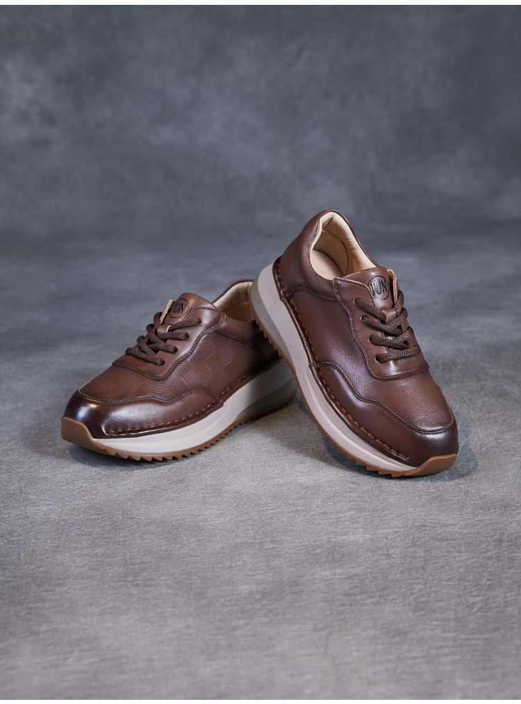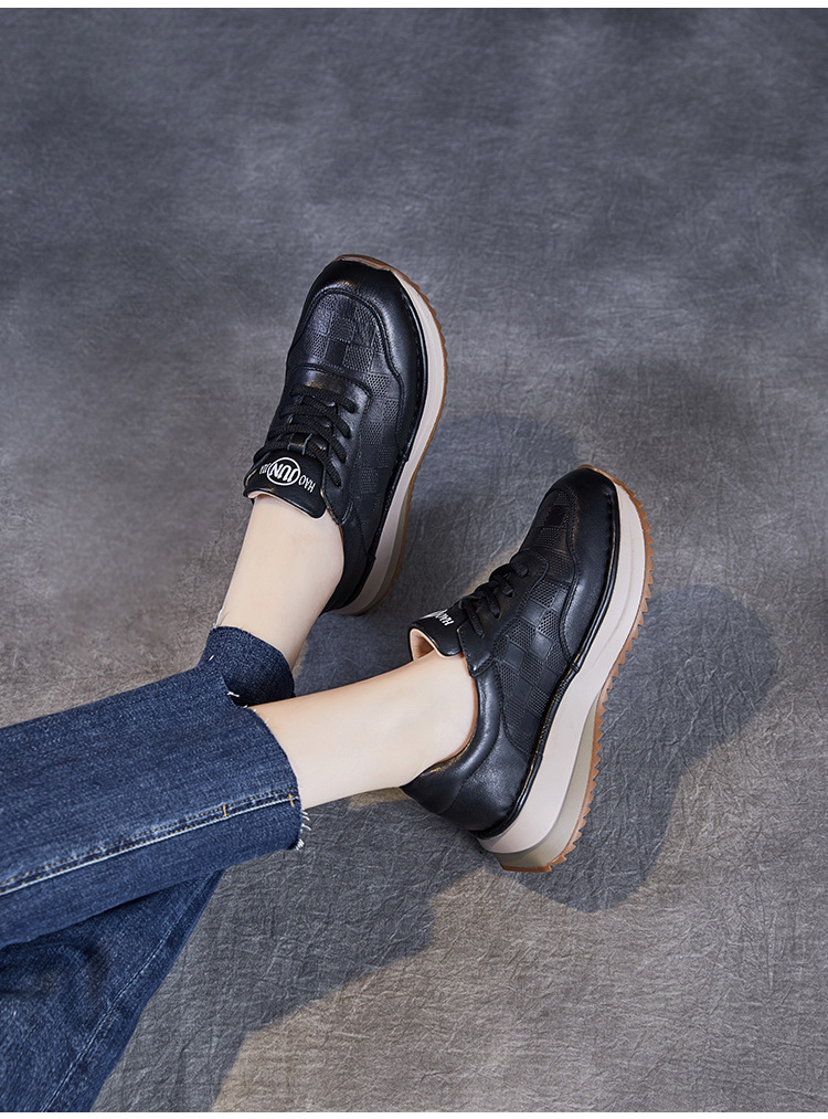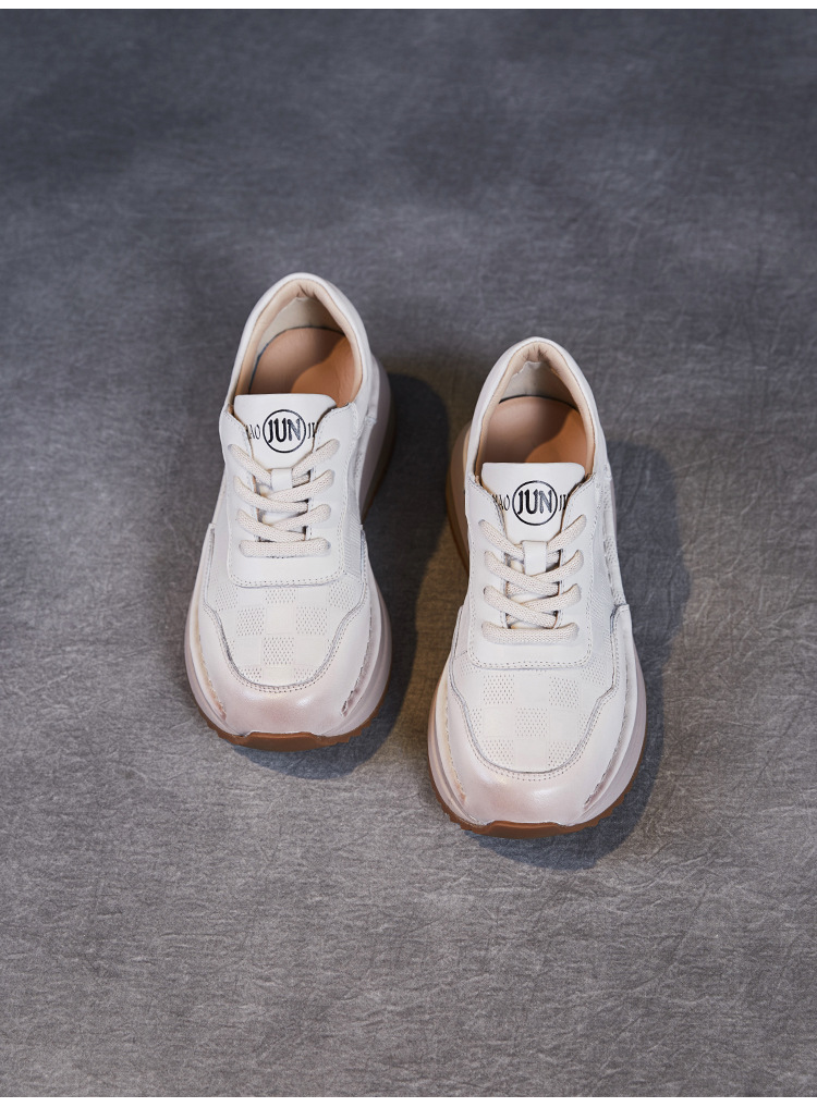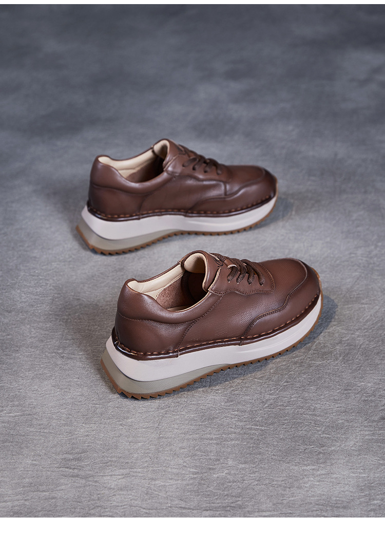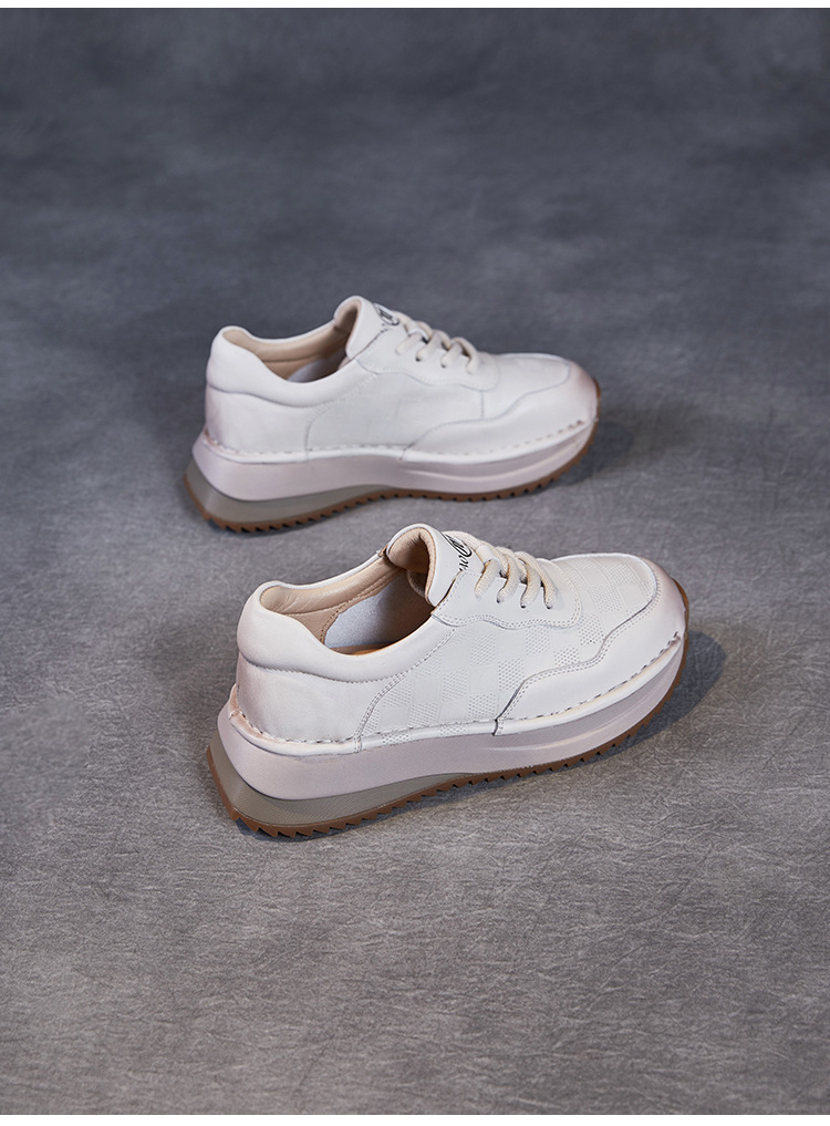 뷰티 여성 신발 봄 새로운 고급 Cowhide 스포츠 포레스트 검프 신발 두꺼운 밑창 정품 가죽 캐주얼 레이스 업 가죽 신발