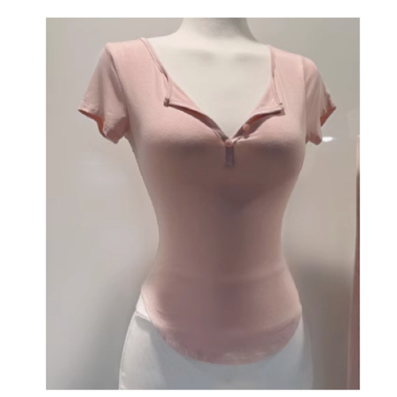 핫 걸스 섹시한 마이크로 투명 하프 오픈 칼라 타이트 반팔 티셔츠 봄과 여름 디자인 느낌의 기질 여성 가슴 드러나는 빅탑스토어 가기
