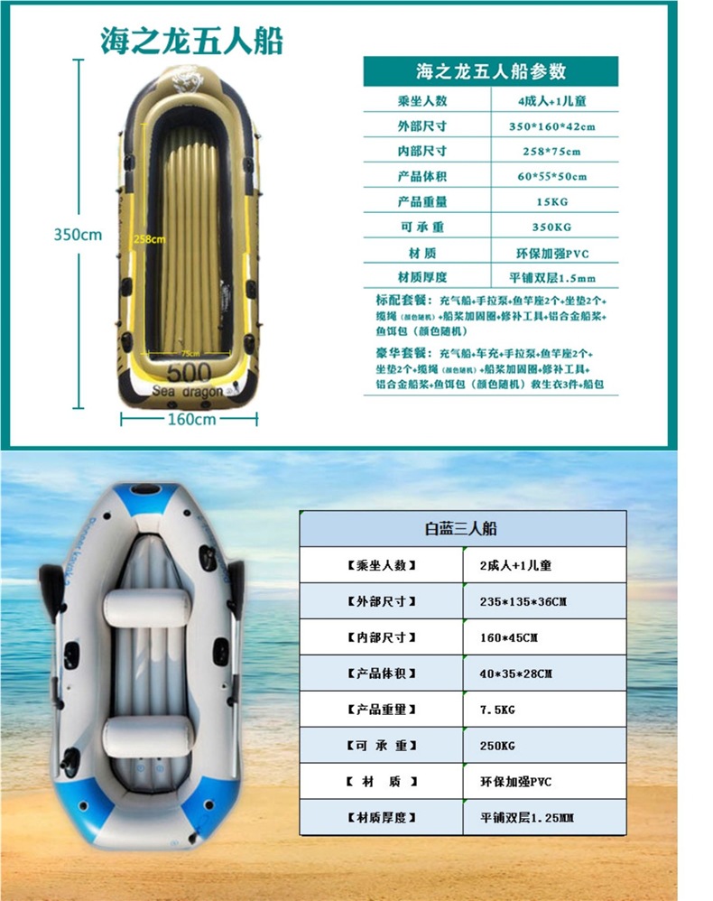 • Haizhilong 두꺼운 3인 표준 패키지(주문 시 무료 보트 가방)
