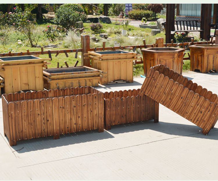 Z 탄화 부식 방지 나무 꽃 상자 발코니 야채 상자 실내 및 야외 안뜰 나무 단단한 나무 꽃 상자 직사각형 L스토어 가기