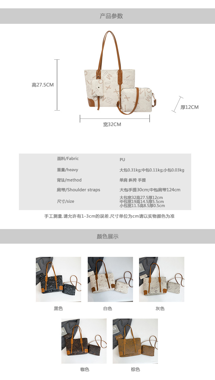 대용량 가방 2025 새로운 패션 어깨 가방 통근 모든 경기 휴대용 토트 백 여성용 대형 편지 3 피스 세트