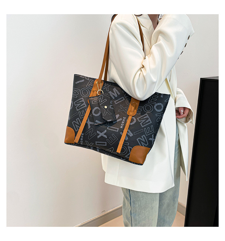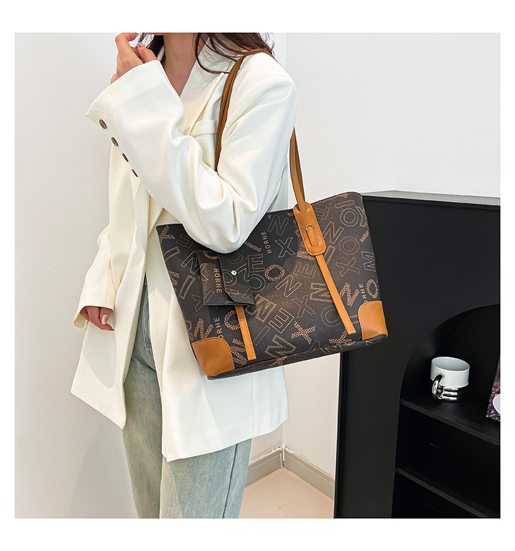 대용량 가방 2025 새로운 패션 어깨 가방 통근 모든 경기 휴대용 토트 백 여성용 대형 편지 3 피스 세트스토어 가기