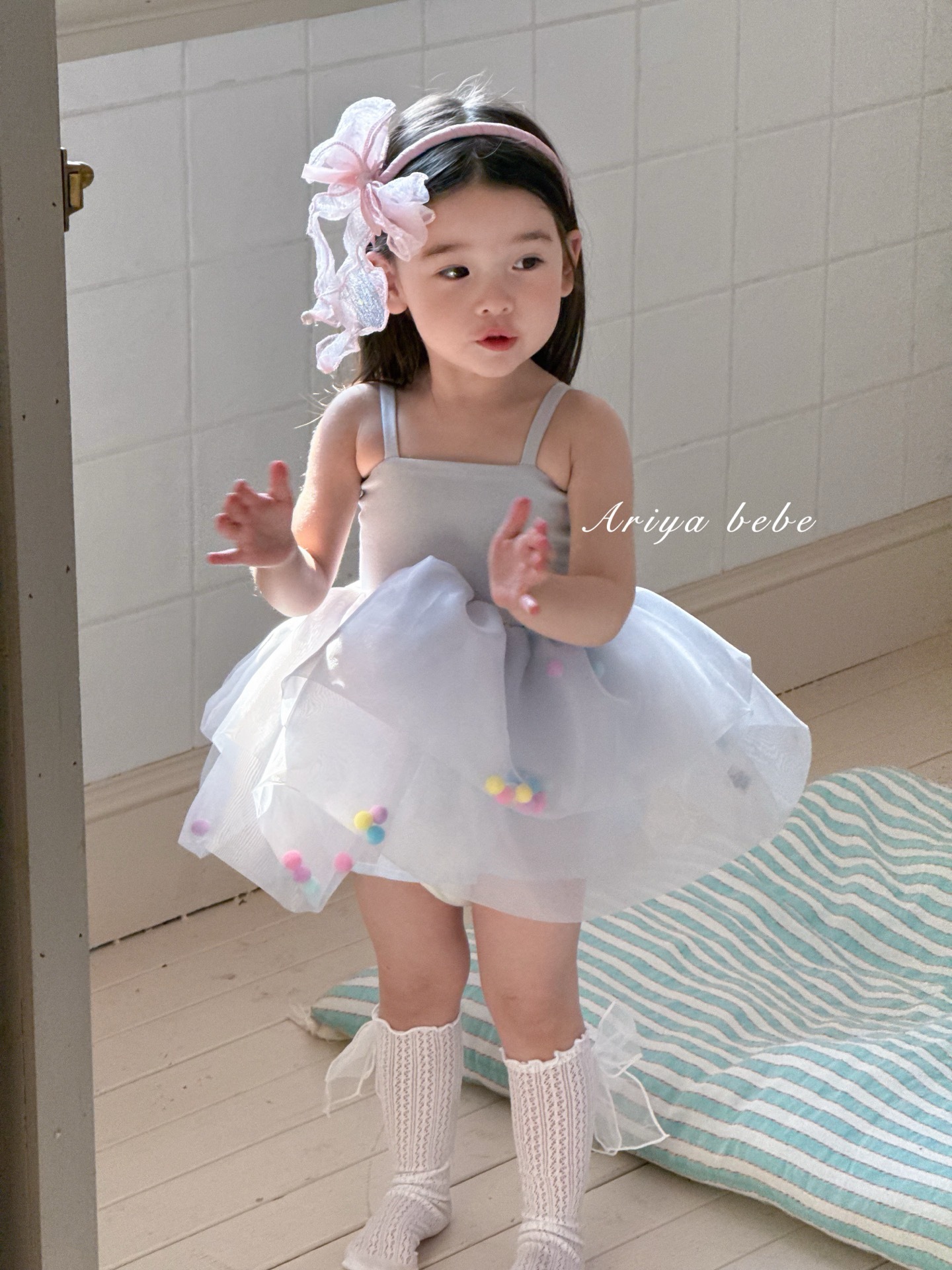 아리아 여름 새 소녀 아기 소녀 달콤한 컬러 볼 메쉬 슬링 공주 원피스 055스토어 가기