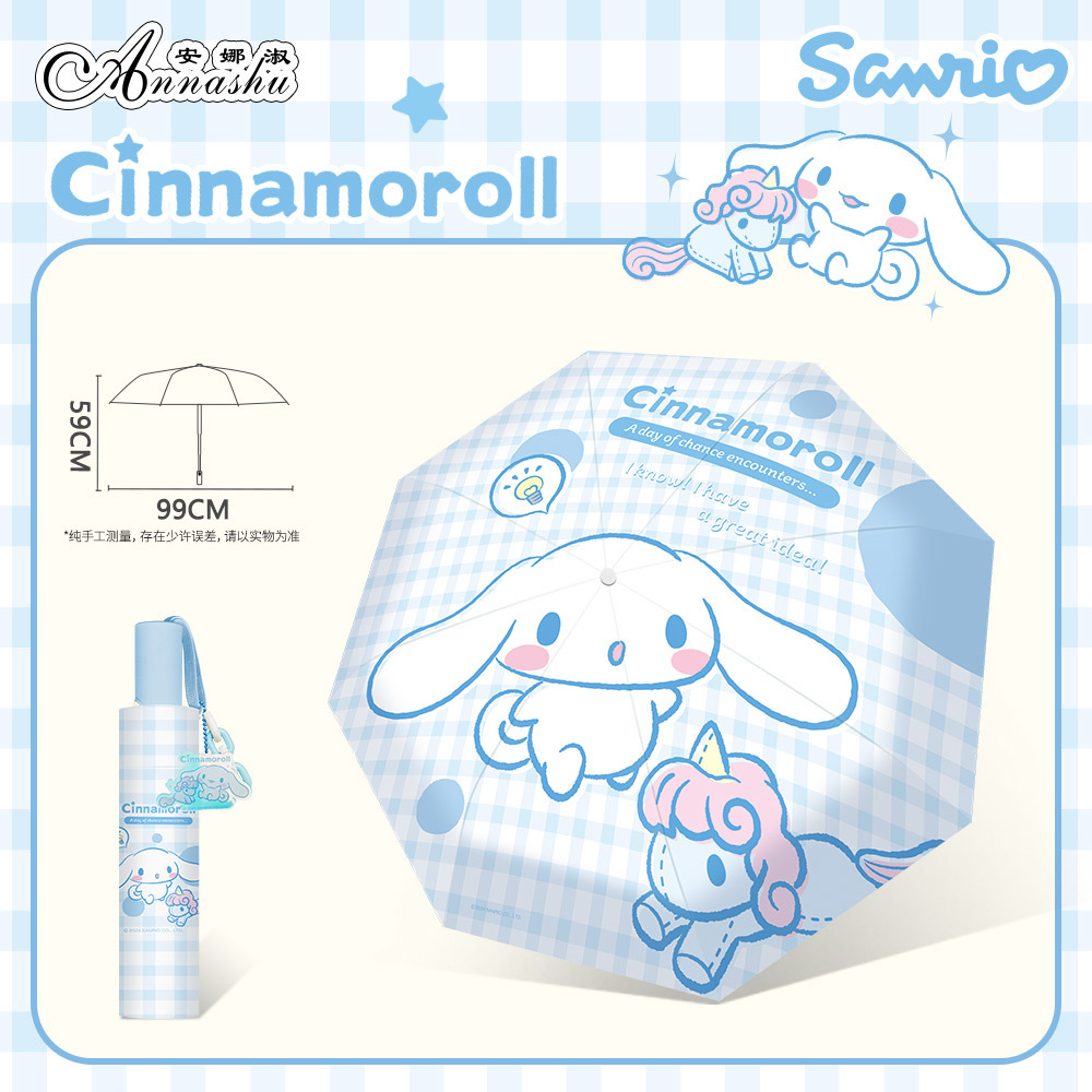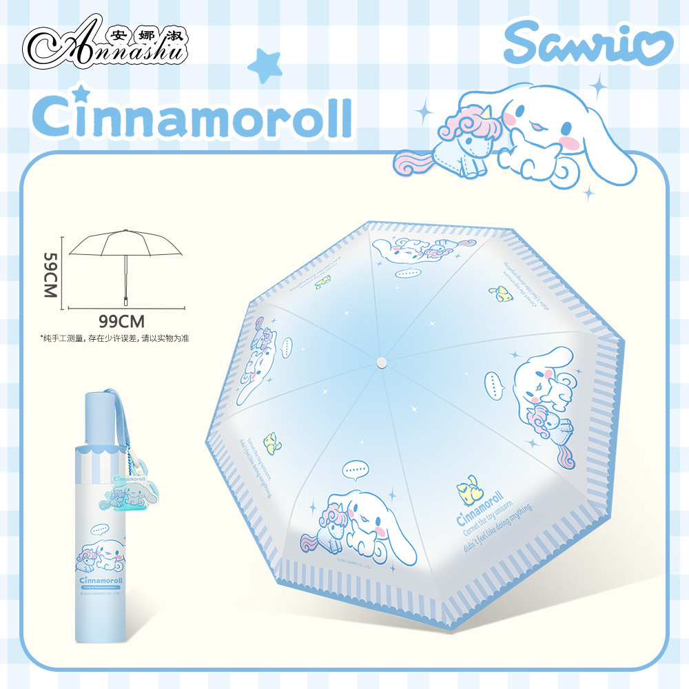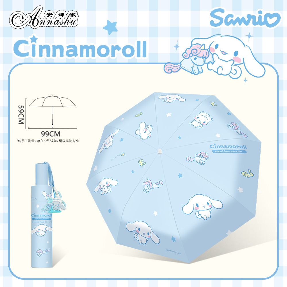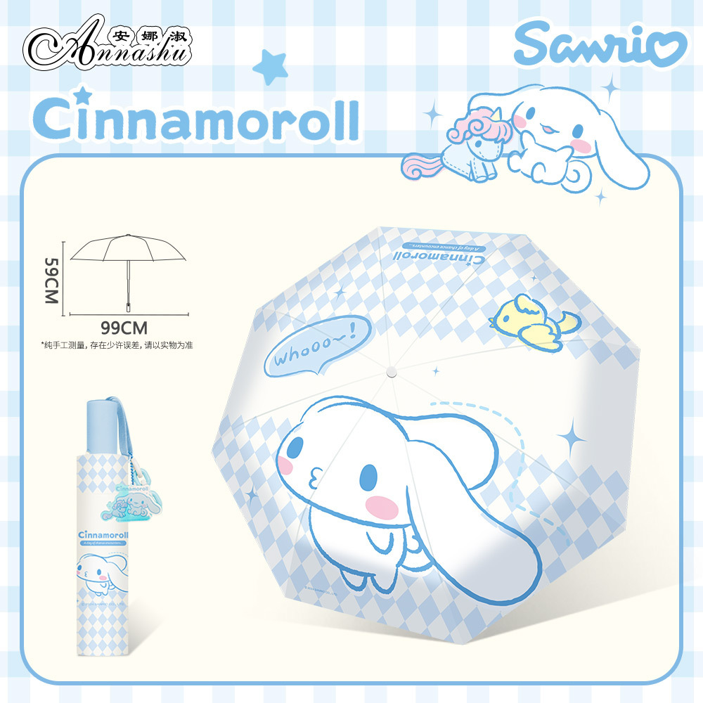 정품 산리오 우산 유귀 개 태양 우산 써니 비 이중 목적 태양 보호 자외선 보호 3 배 자동 우산
