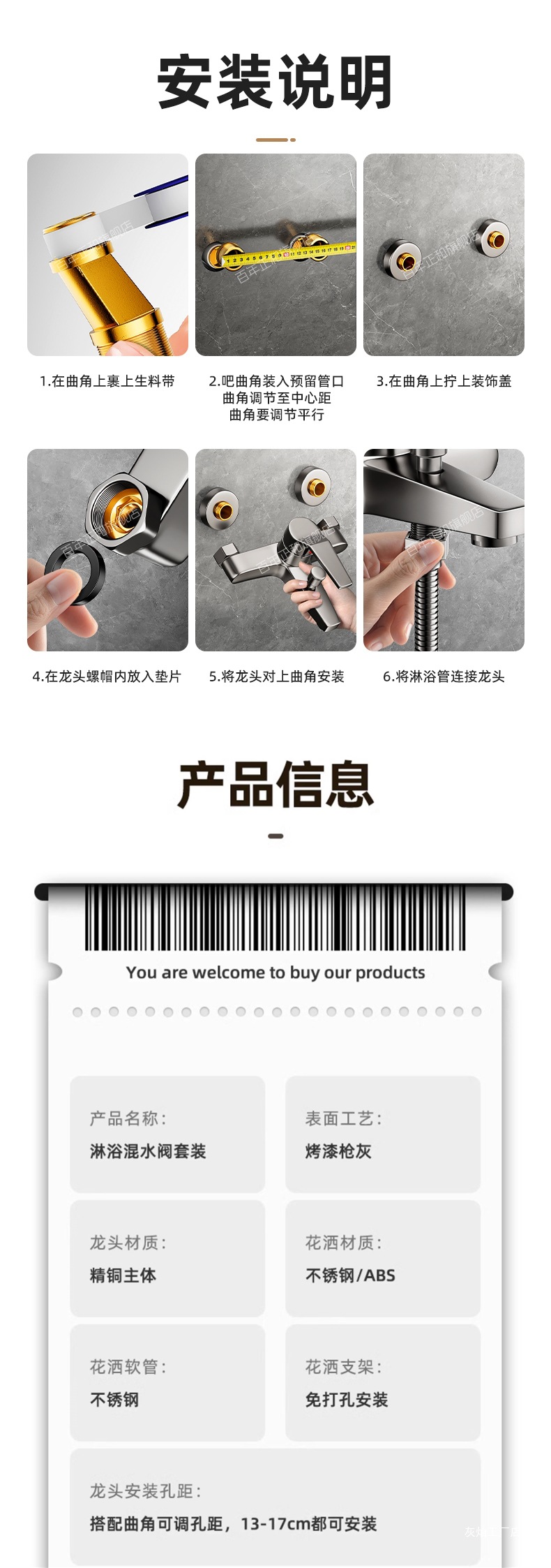 • 【클래식❤세련된 구리 농축] 샤워수전(범용설치+부속품풀세트)