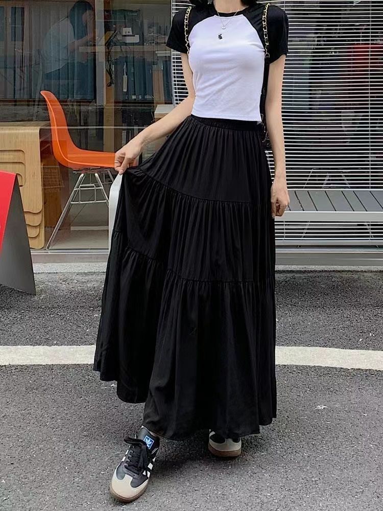 달콤한 프랑스 반쪽 치마 여자 봄과 여름 새로운 올매치 대형 허리 치마 더깅 A 라인 스커트 크로스 국경 도매스토어 가기
