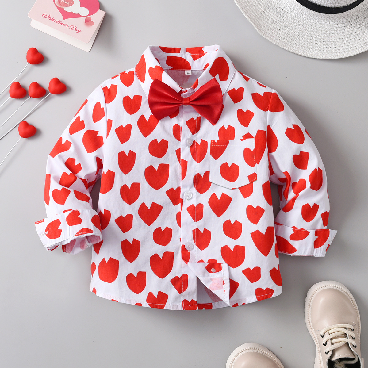 새로운 국경 봄과 여름 스타일 소년 붉은 사랑 인쇄 옷깃 긴 소매 셔츠 공장 직접 재고 도매스토어 가기