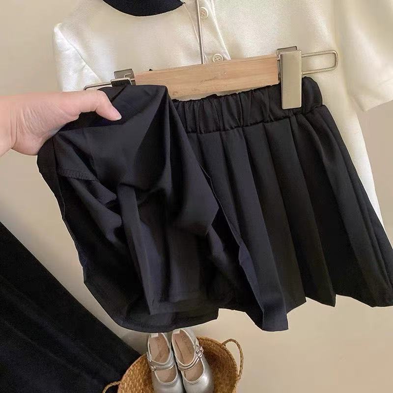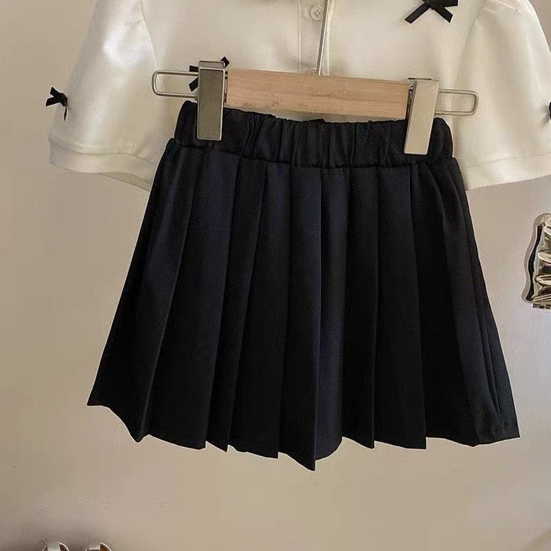 • 흰 나비 반소매 + 블랙 플리츠 스커트