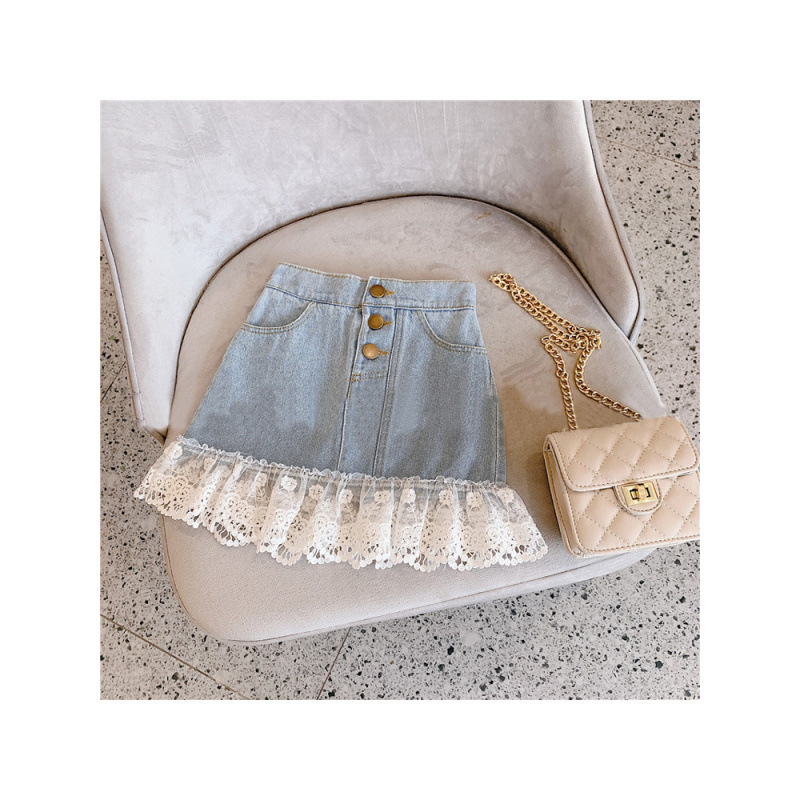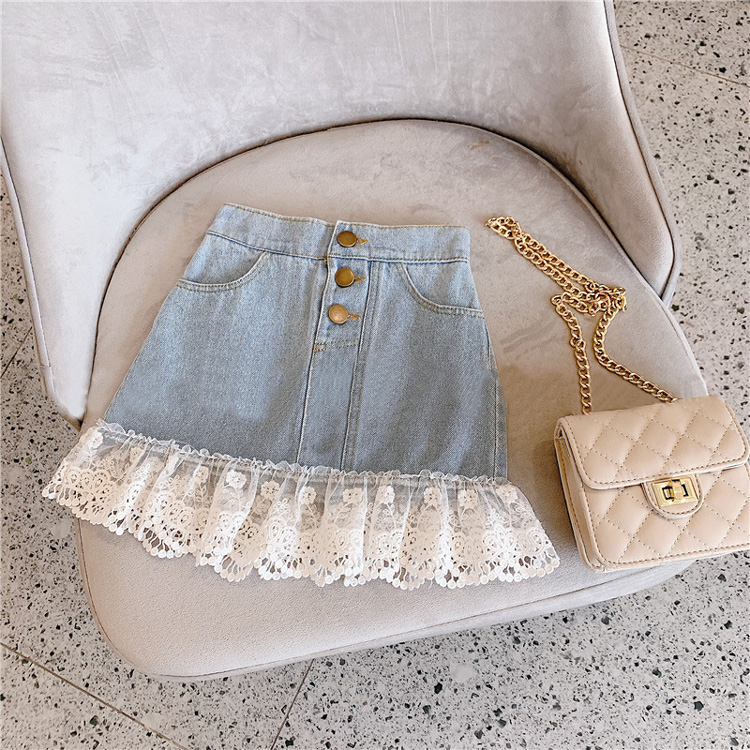 아동복 2025 여름 새 어린이 느슨한 스커트 소녀의 달콤한 레이스 바느질 데님 스커트
