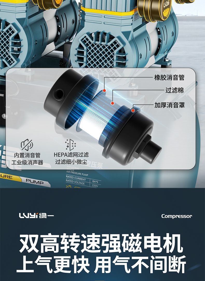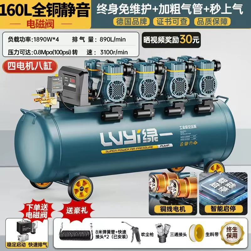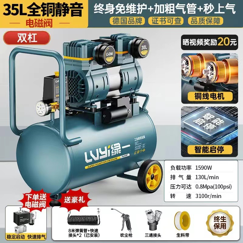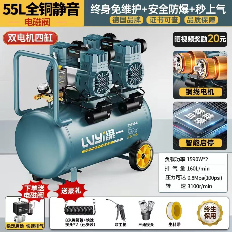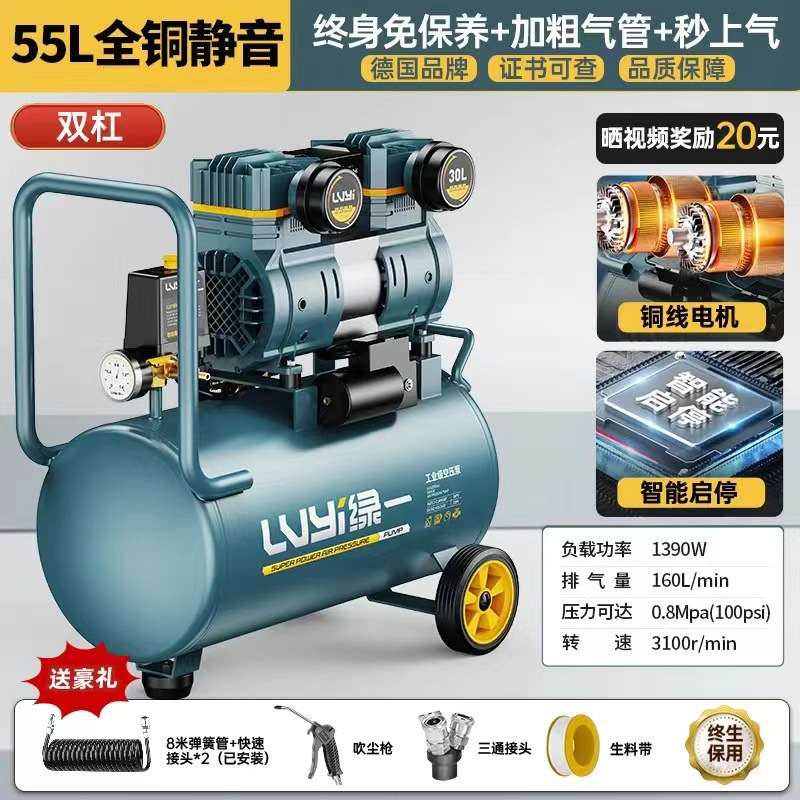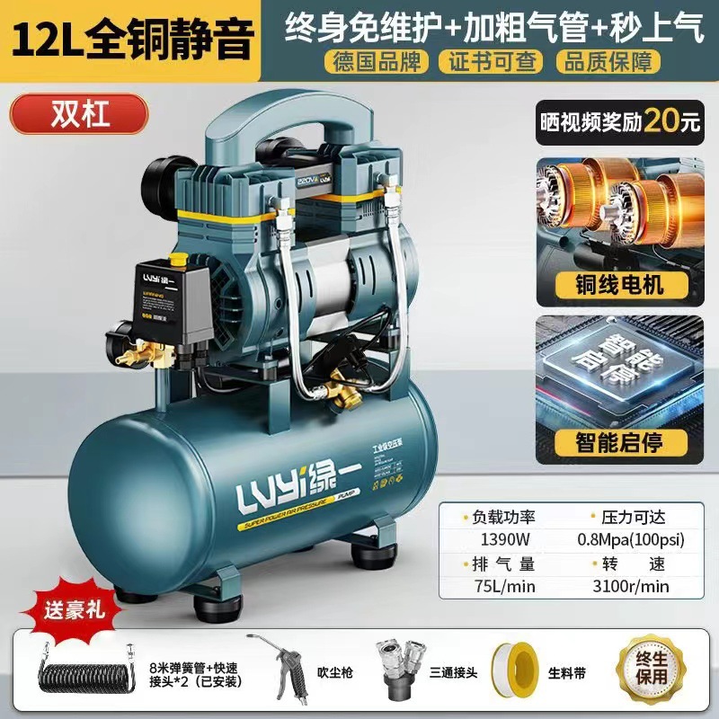 오일 프리 공기 압축기 자동 공기 펌프 산업 등급 공기 압축기 작은 220V 휴대용 목공 고압 공기 펌프스토어 가기
