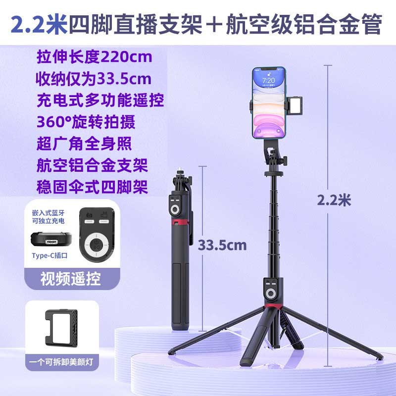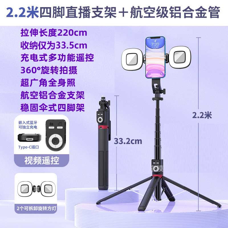 • P225TK-V2【 2.2m + Douyin 리모컨 + 알루미늄 합금 튜브 + 작은 사각형 조명 2개】