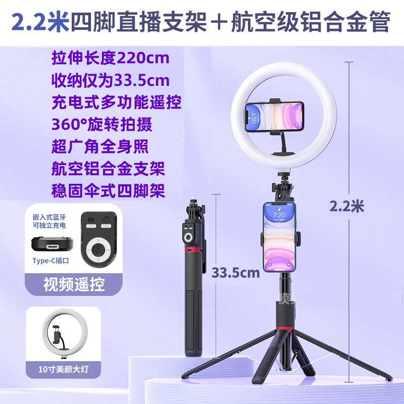 • P225TK- 10inch 램프 [ 2.2m + Douyin 리모컨 + 알루미늄 합금 튜브 + 10inch 뷰티 램프 ]