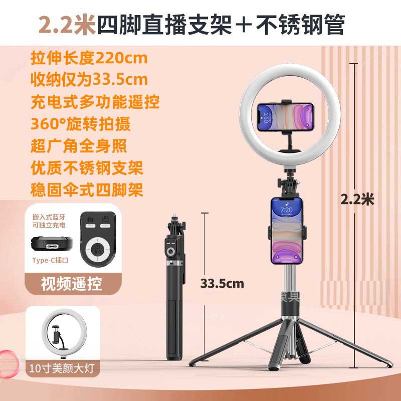 • P220TK- 10inch 램프 [ 2.2m + Douyin 리모컨 + 스테인레스 스틸 튜브 + 10inch 뷰티 램프 ]