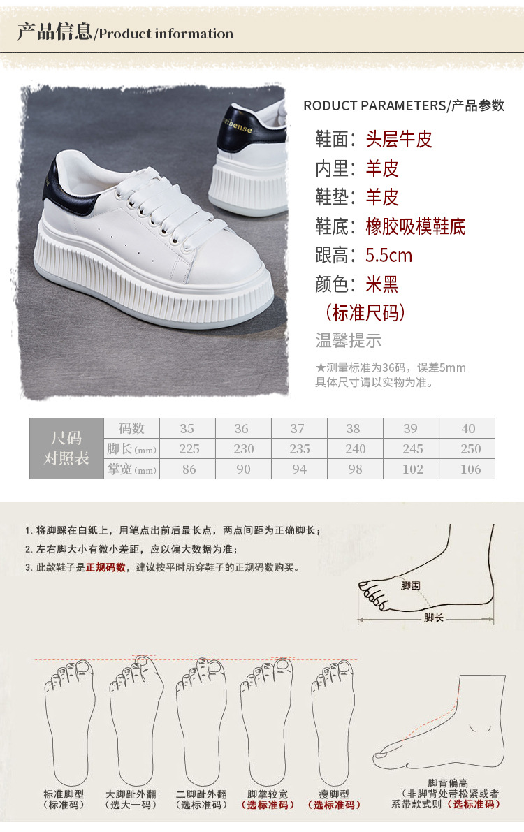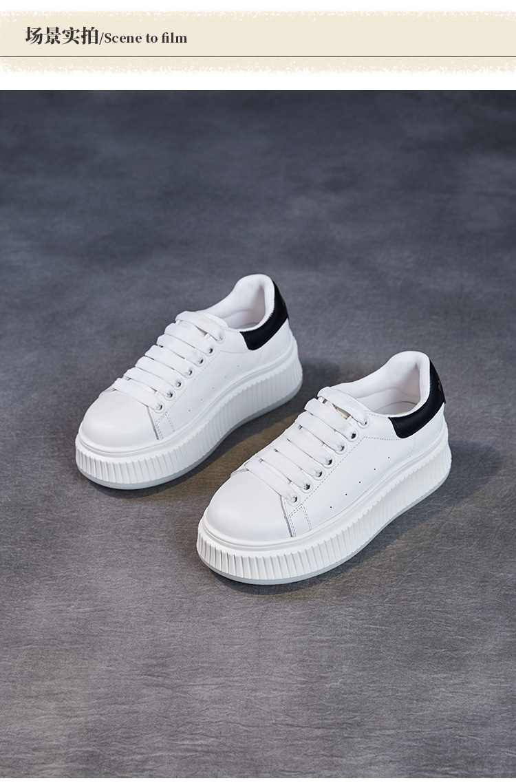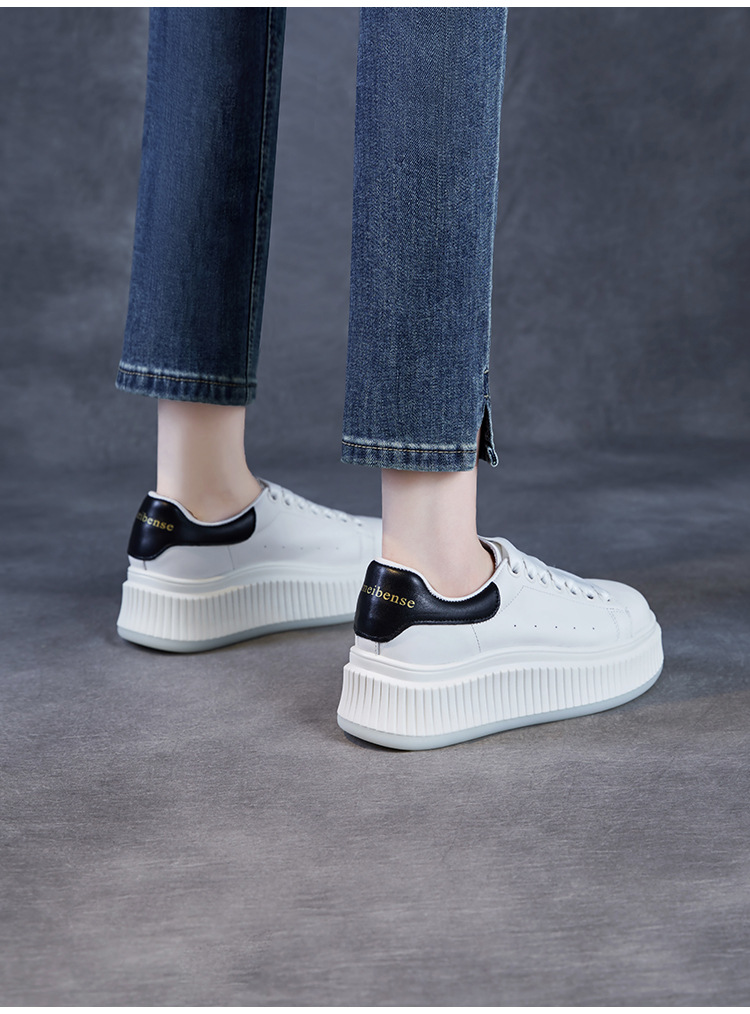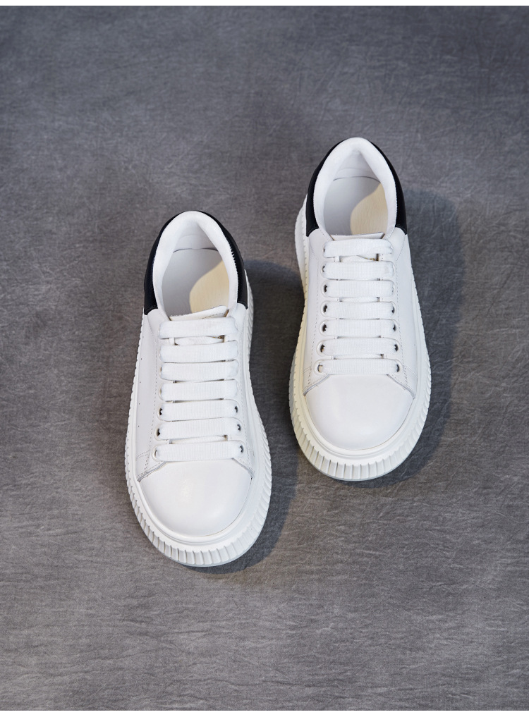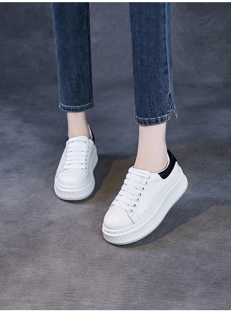 미국 천연 컬러 가죽 스포츠 캐주얼 신발 여성 봄 2025 새로운 두꺼운 밑창 증가 신발 다목적 흰색 신발