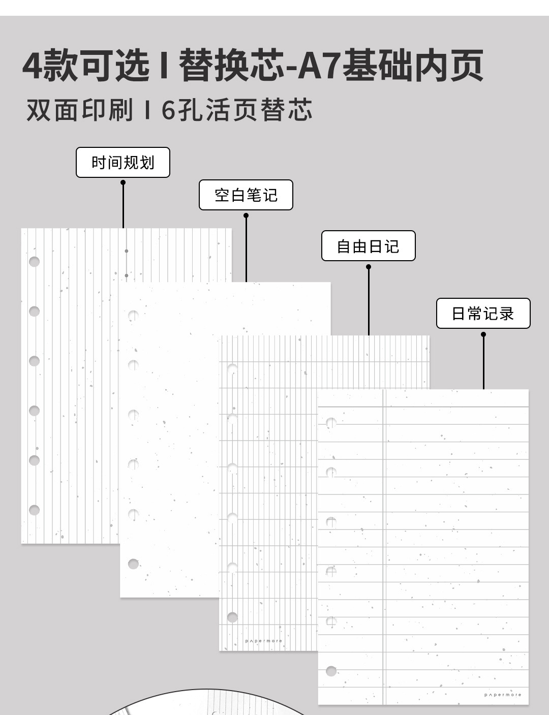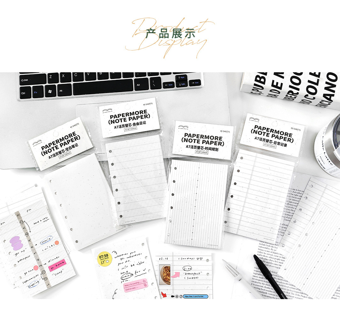 Papermore A7 느슨한 잎 대체 특수 종이 핸드북 내부 페이지 간단한 기본 학생 핸드북 기본 종이스토어 가기
